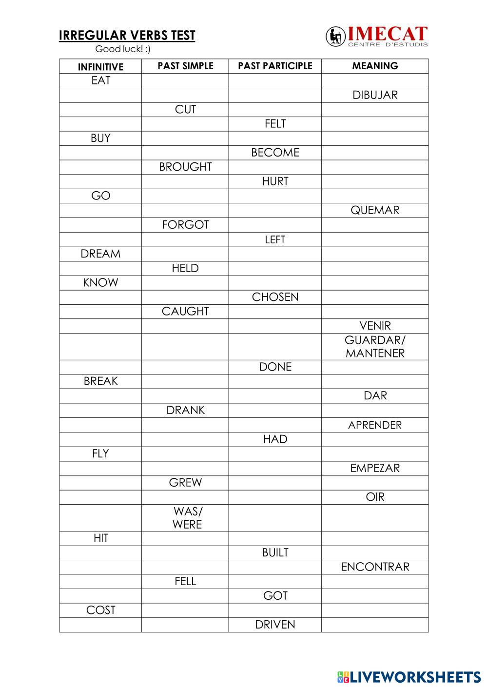 Complete the gaps with te correct form of the verb.