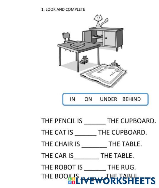 Read the sentences and choose the correct preposition: in, on, under, behind.