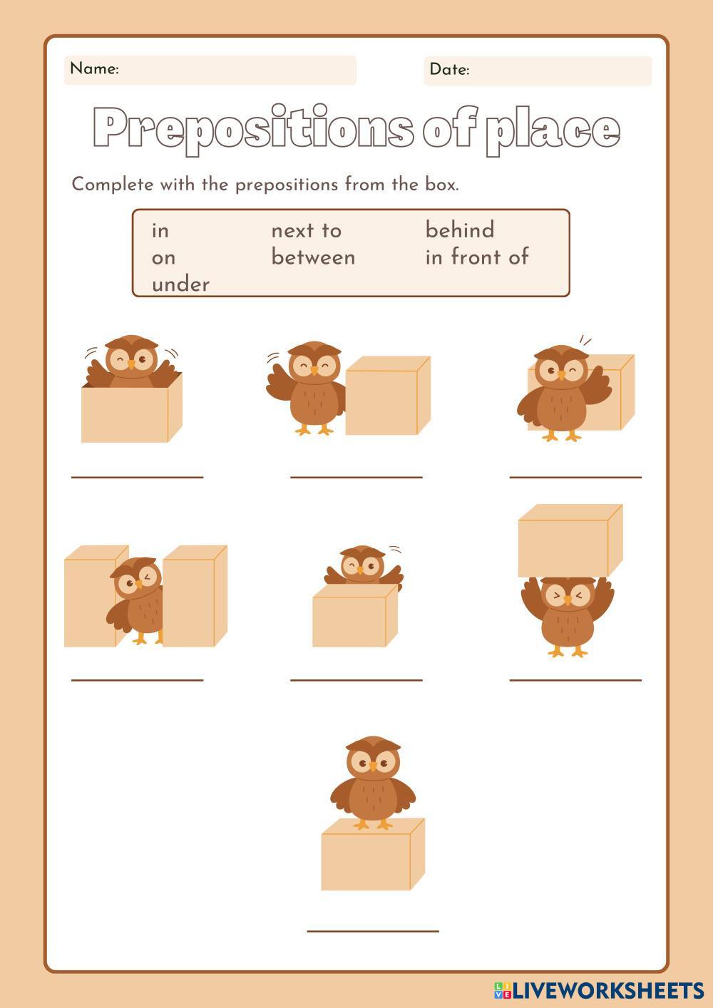 Fill in the blanks with the correct preposition from the box.