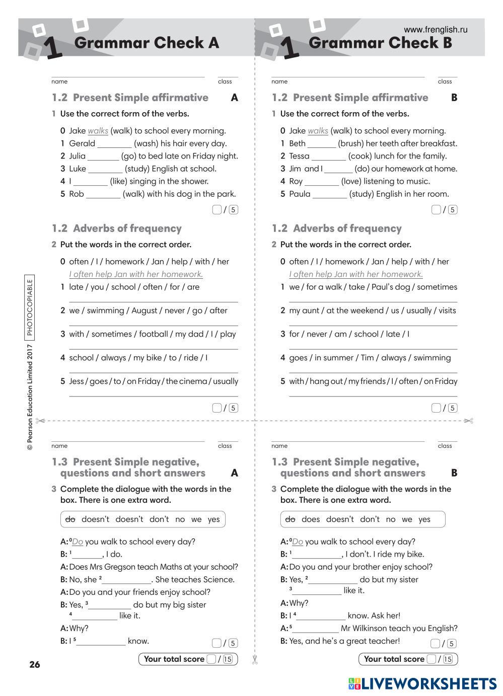 Created by Vikaka English Language Elementary 3rd grade Grammar English Author's Instructions Go Getter 2 Unit 1 My Google Classroom Courses × 0 classes selected (0 students total) Quick Access Select all classes (0 classes) All Classes Loading courses... Cancel Share Share to selected Course __COURSE_NAME__ __STUDENT_NAME__ (__STUDENT_EMAIL__) Present Simple Download Worksheet Validation Check my answers Emails my answers to my teacher Full name Group/level School subject Teacher's email or key code Close Submit Validating worksheet... (12) Your answers have been sent to your teacher. Good luck! OK We encountered an error submitting your answers. Please try again. OK Advertisement | Go Ad Free Created by Vikaka English Language Elementary 3rd grade Grammar English Author's Instructions Go Getter 2 Unit 1 Explore Worksheets E3_Homework_Week 32 English Language 3rd grade E3_Homework_Week 32 Grammar - English Language Answer the questions Super-Compare Table English Language 3rd grade Super-Compare Table Grammar - English Language ... Starter 4 Unit 7 Lesson 5 Homework English Language 3rd grade Starter 4 Unit 7 Lesson 5 Homework Grammar - English Language Review Grammar 14th finalexam English Language 3rd grade 14th finalexam Grammar - English Language complete the grammar exercises