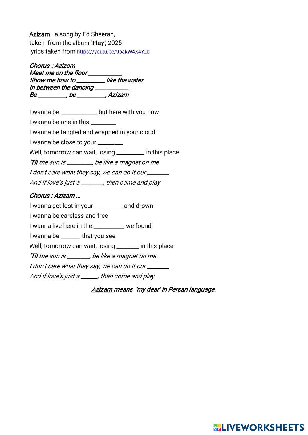 Listen to the song and Complete the lyrics