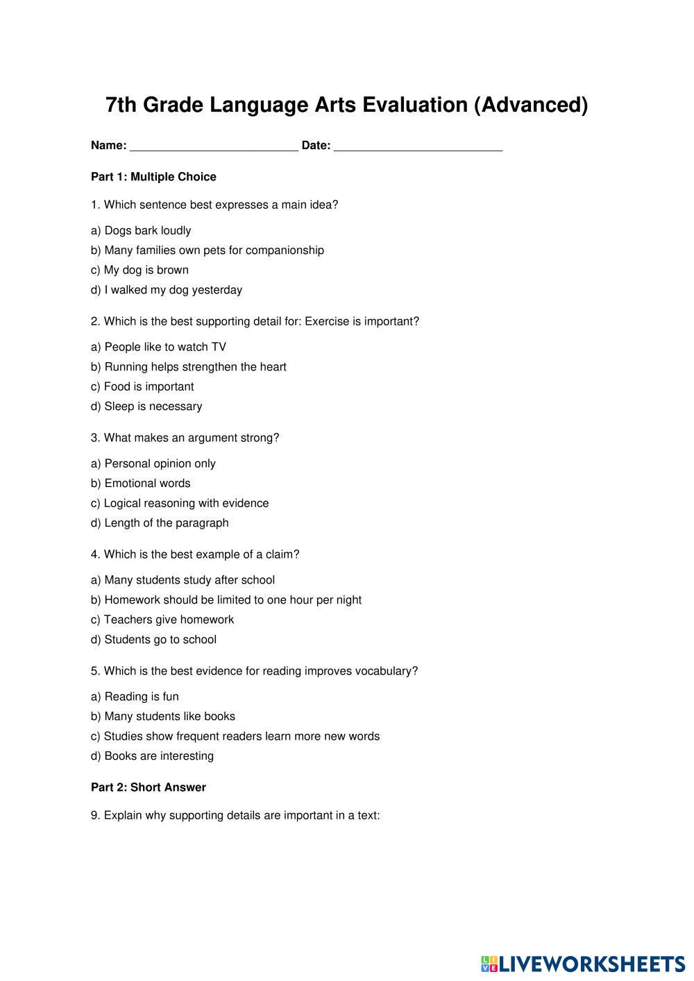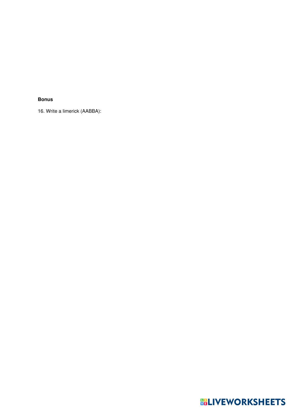 Created byJennifer Johana Aguirre Rios English Language Middle School 7th grade Literary Devices and Text Structure English Author's Instructions complete My Google Classroom Courses × 0 classes selected (0 students total) Quick Access Select all classes (0 classes) All Classes Loading courses... Cancel Share Share to selected Course __COURSE_NAME__ __STUDENT_NAME__ (__STUDENT_EMAIL__) LITERATURE Download Worksheet Validation Check my answers Emails my answers to my teacher Full name Group/level School subject Teacher's email or key code Close Submit Validating worksheet... (12) Your answers have been sent to your teacher. Good luck! OK We encountered an error submitting your answers. Please try again. OK Advertisement | Go Ad Free Created byJennifer Johana Aguirre Rios English Language Middle School 7th grade Literary Devices and Text Structure English Author's Instructions complete Explore Worksheets قصيدة المسيرة ج English Language 7th grade قصيدة المسيرة ج Literary Devices and Text Structure - English Language اقرئي الأسئلة جيدًا ثم اختاري الإجابة الصحيحة Surat Pribadi Kelas 7 English Language 7th grade Surat Pribadi Kelas 7 Literary Devices and Text Structure - English Language Tentukan Struktur pada surat pribadi dan buatlah surat pribadi rrrrrrrrgrdfvg English Language 7th grade rrrrrrrrgrdfvg Literary Devices and Text Structure - English Language ergvedrfvg Day 4 Sentence Structure English Language 7th grade Day 4 Sentence Structure Literary Devices and Text Structure - English Language pick the answer