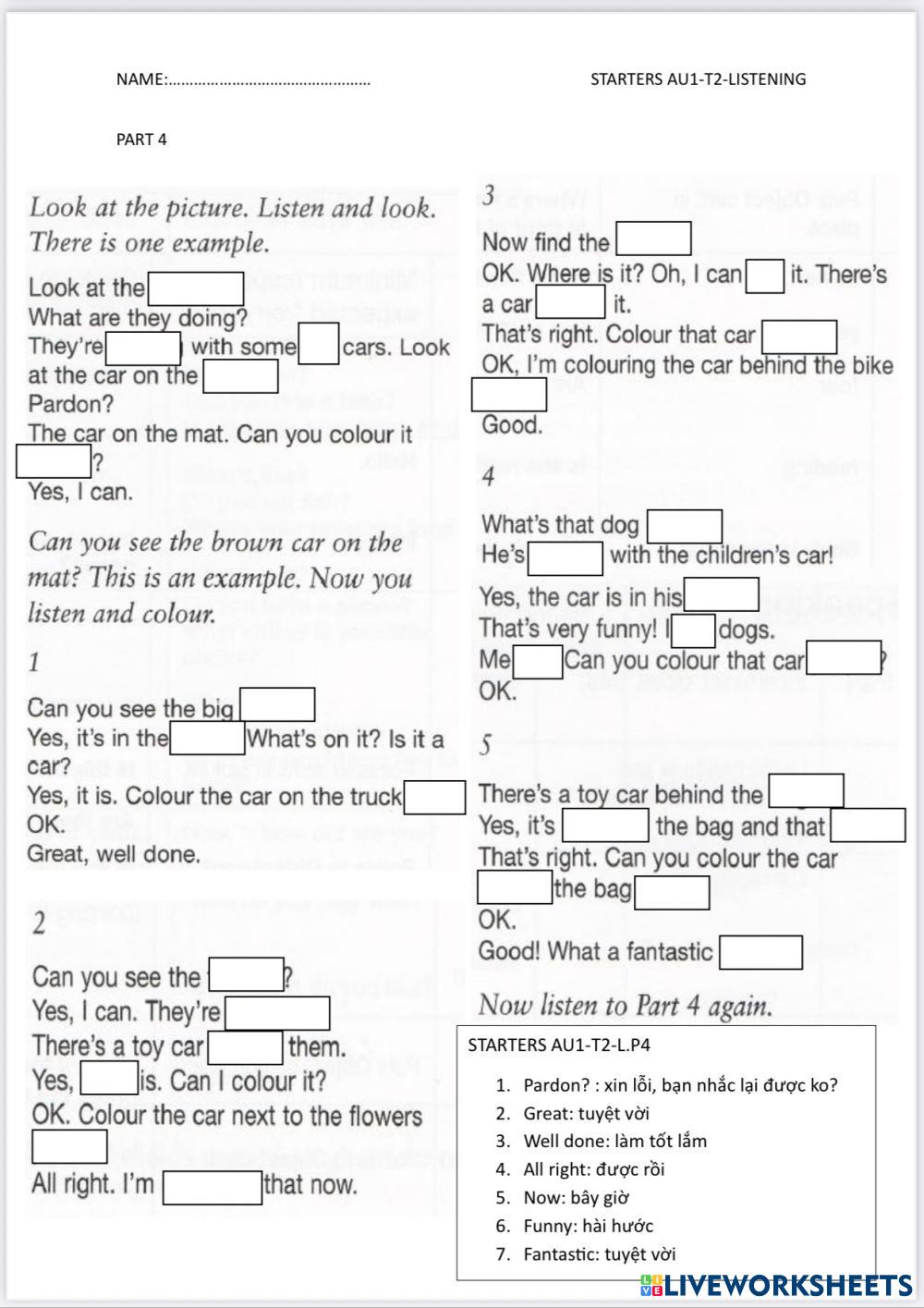STARTERS AUTHENTIC 1-TEST 2-LISTENING PART 3