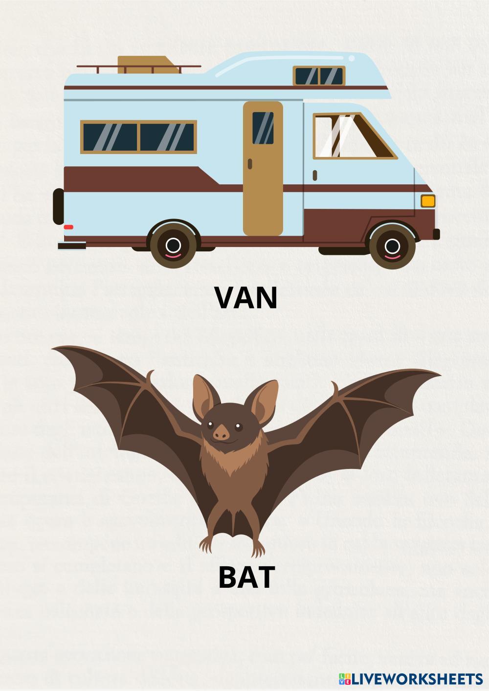Listen to the audio clips and click the VAN when you listent the vibrant sound /v/ or click BAN when you listent the bilabial sound /b/