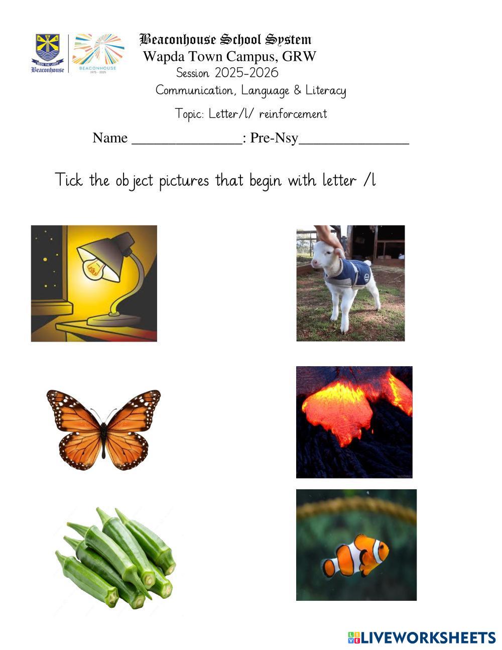 Tick the picture of objects that begin with letter /l/