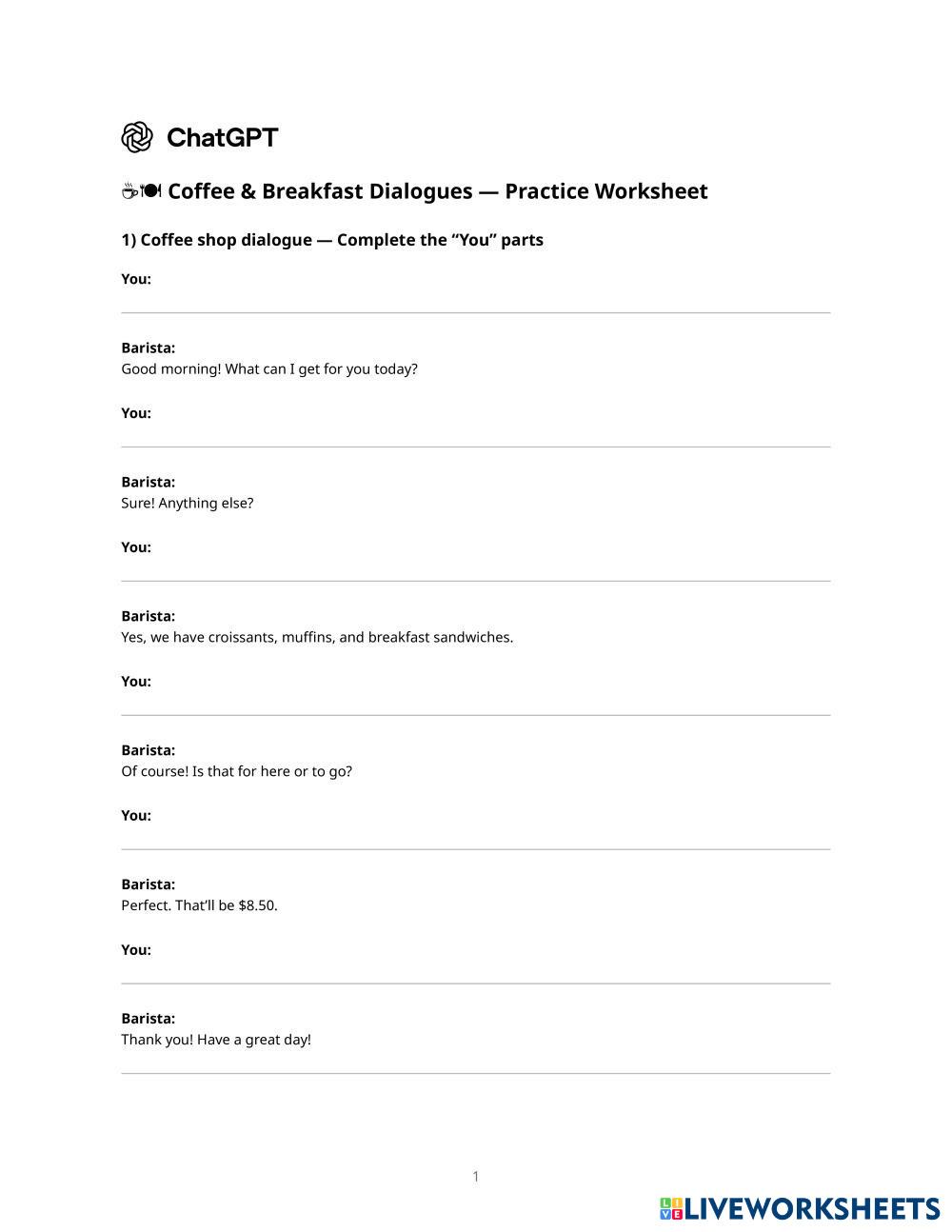 Complete the dialogues