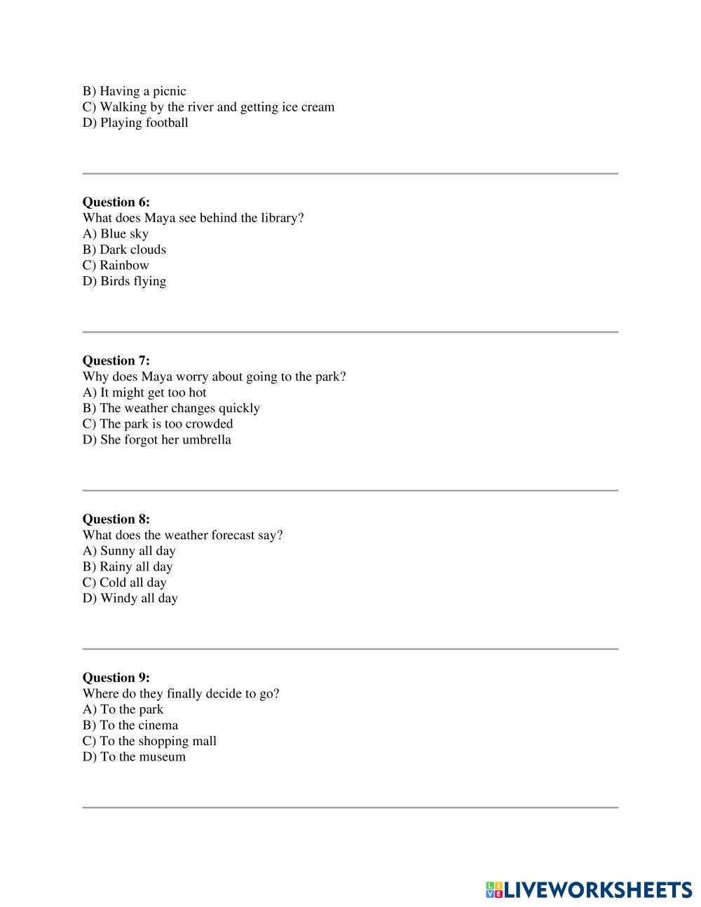 Read the questions carefully and select the correct answer .