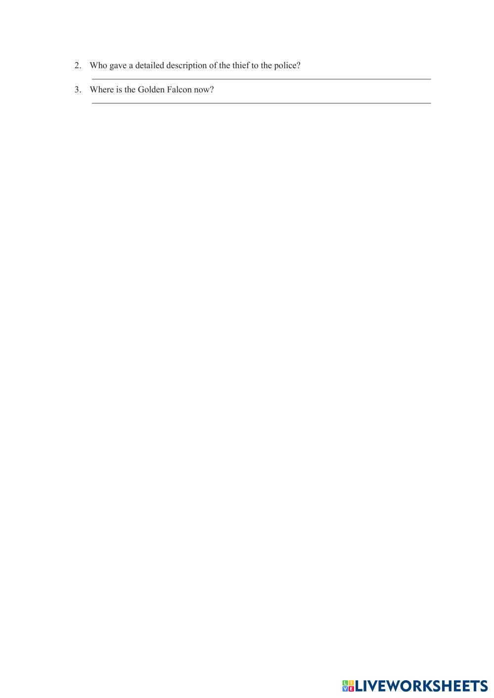 Đọc 2 bài viết "Golden Falcon theft from Sachy museum" và "Golden Falcon flies home" ở trang 115,116 và trả lời câu hỏi.
