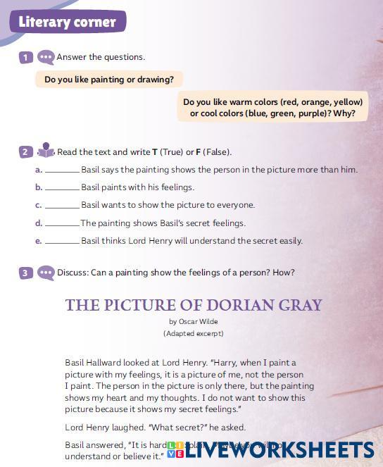 Created by camilavalentinaopazomeza English Language Middle School 6th grade Reading and Text Analysis English Author's Instructions Read and answer My Google Classroom Courses × 0 classes selected (0 students total) Quick Access Select all classes (0 classes) All Classes Loading courses... Cancel Share Share to selected Course __COURSE_NAME__ __STUDENT_NAME__ (__STUDENT_EMAIL__) Read Download Worksheet Validation Check my answers Emails my answers to my teacher Full name Group/level School subject Teacher's email or key code Close Submit Validating worksheet... (12) Your answers have been sent to your teacher. Good luck! OK We encountered an error submitting your answers. Please try again. OK Advertisement | Go Ad Free Created by camilavalentinaopazomeza English Language Middle School 6th grade Reading and Text Analysis English Author's Instructions Read and answer Explore Worksheets Activity 1 English Language 6th grade Activity 1 Reading and Text Analysis - English Language READ AND ANSWER THE ITEMS Easter English Language 6th grade Easter Reading and Text Analysis - English Language Do the preparation exercise first. Then read the article and do the other exercises. La leyenda del río escondido English Language 6th grade La leyenda del río escondido Reading and Text Analysis - English Language Comprensión lectora Play script "Six Too Many" English Language 6th grade Play script "Six Too Many" Reading and Text Analysis - English Language Read the Play Script "Six Too Many" and answer the questions