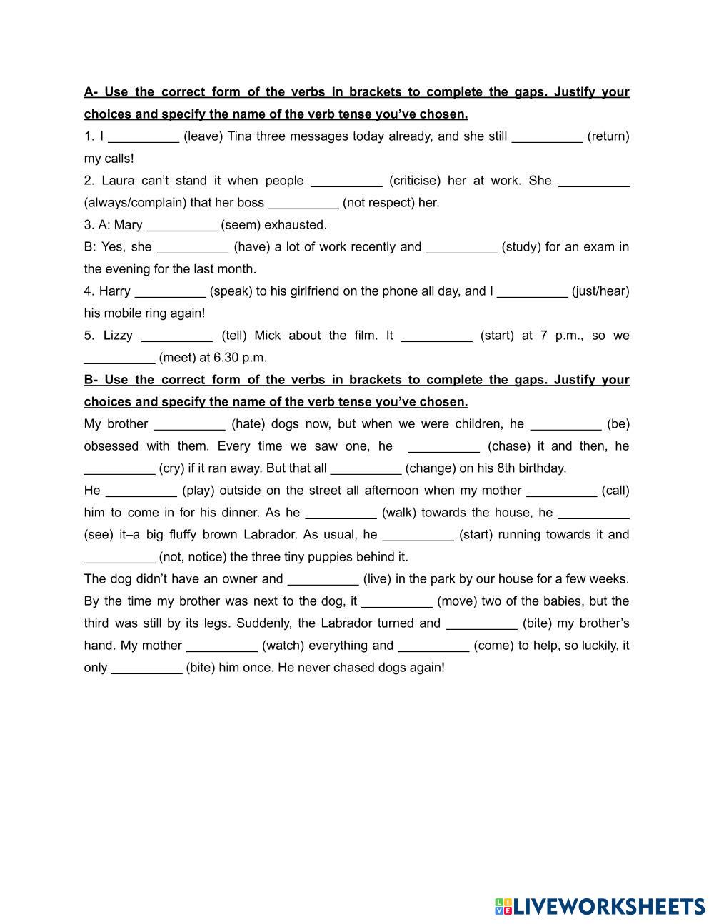 Complete the gaps with the correct form of the verb in brackets.