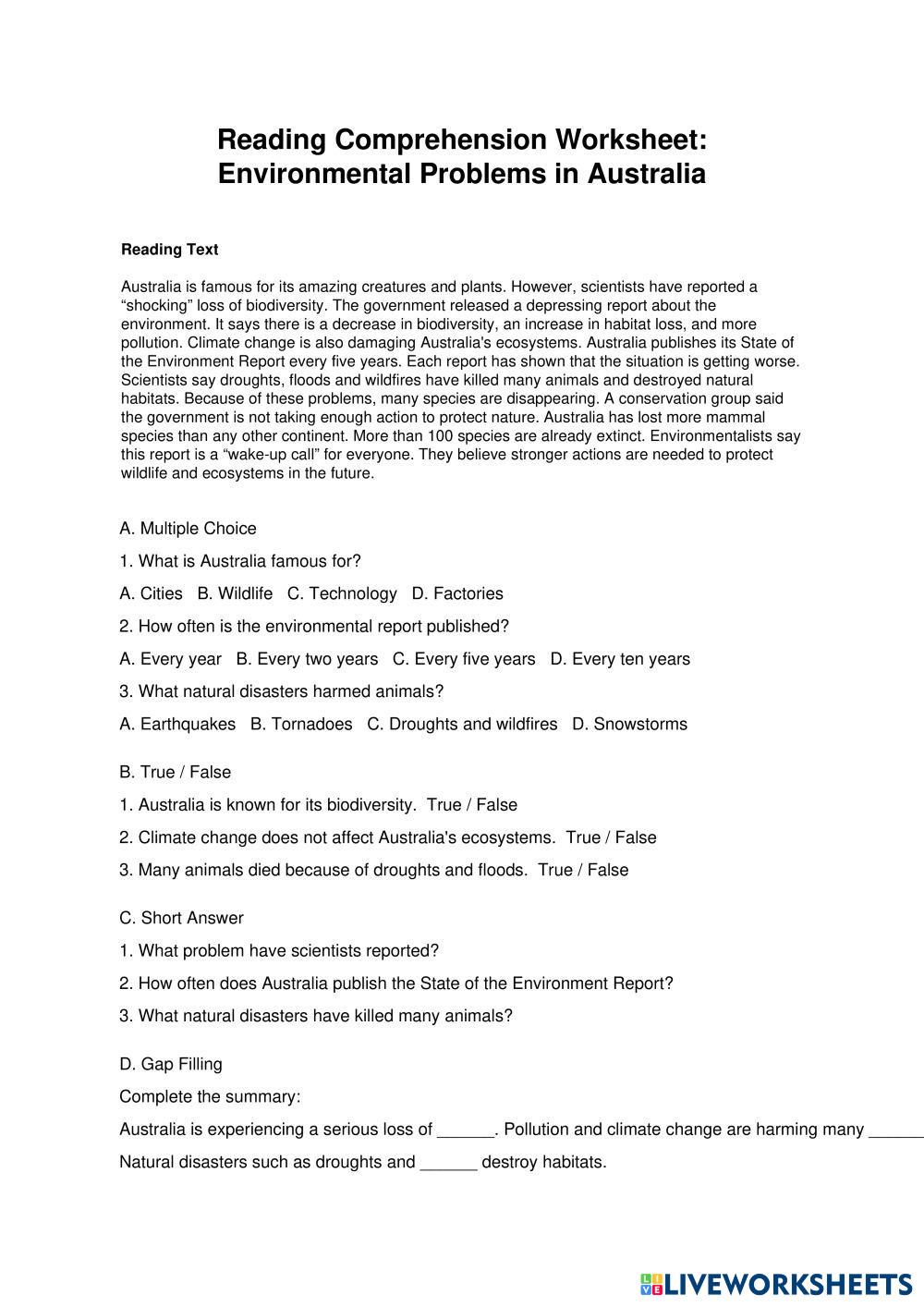 Reading Comprehension: Environmental Problems in Australia