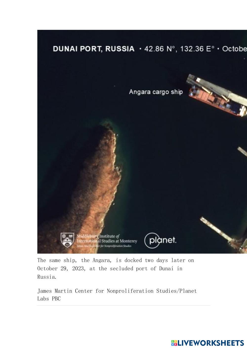 B. Satellite imagery showing Russian ships at a Far Eastern port