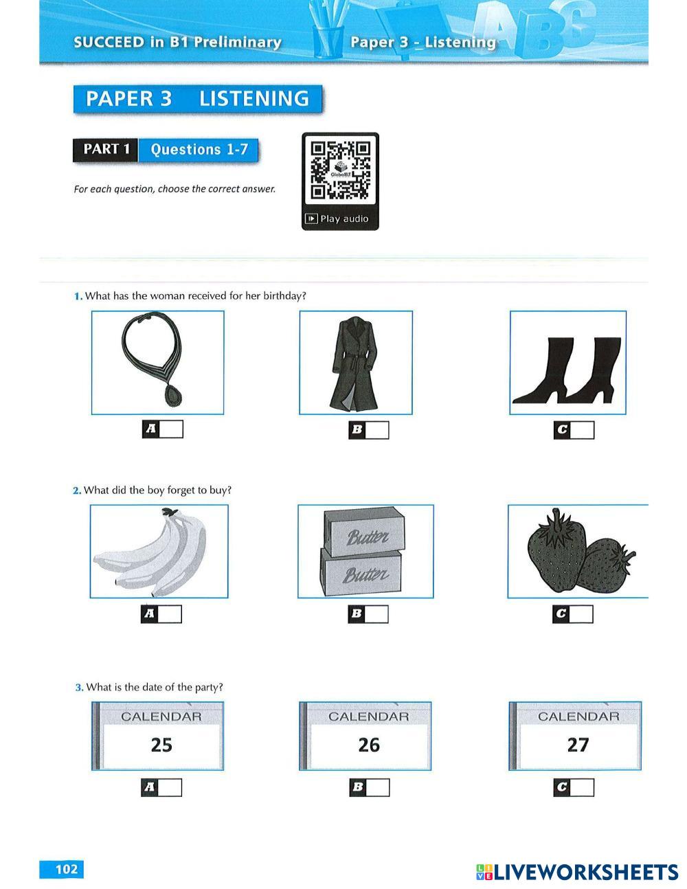 Created by minhphm English Language High School 12th grade Reading Comprehension English Author's Instructions huhu My Google Classroom Courses × 0 classes selected (0 students total) Quick Access Select all classes (0 classes) All Classes Loading courses... Cancel Share Share to selected Course __COURSE_NAME__ __STUDENT_NAME__ (__STUDENT_EMAIL__) listening test 6 Download Worksheet Validation Check my answers Emails my answers to my teacher Full name Group/level School subject Teacher's email or key code Close Submit Validating worksheet... (12) Your answers have been sent to your teacher. Good luck! OK We encountered an error submitting your answers. Please try again. OK Advertisement | Go Ad Free Created by minhphm English Language High School 12th grade Reading Comprehension English Author's Instructions huhu Explore Worksheets NARRATIVA ECUATORIANA DEL SIGLO XIX English Language 12th grade NARRATIVA ECUATORIANA DEL SIGLO XIX Reading Comprehension - English Language Revise la guía de contenido para desarrollar la actividad. listening test2 English Language 12th grade listening test2 Reading Comprehension - English Language huhu listening test 3 English Language 12th grade listening test 3 Reading Comprehension - English Language hihi listening test 5 English Language 12th grade listening test 5 Reading Comprehension - English Language hehehheh