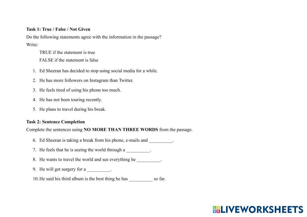 Questions 6–10: Complete the sentences using NO MORE THAN THREE WORDS from the passage.