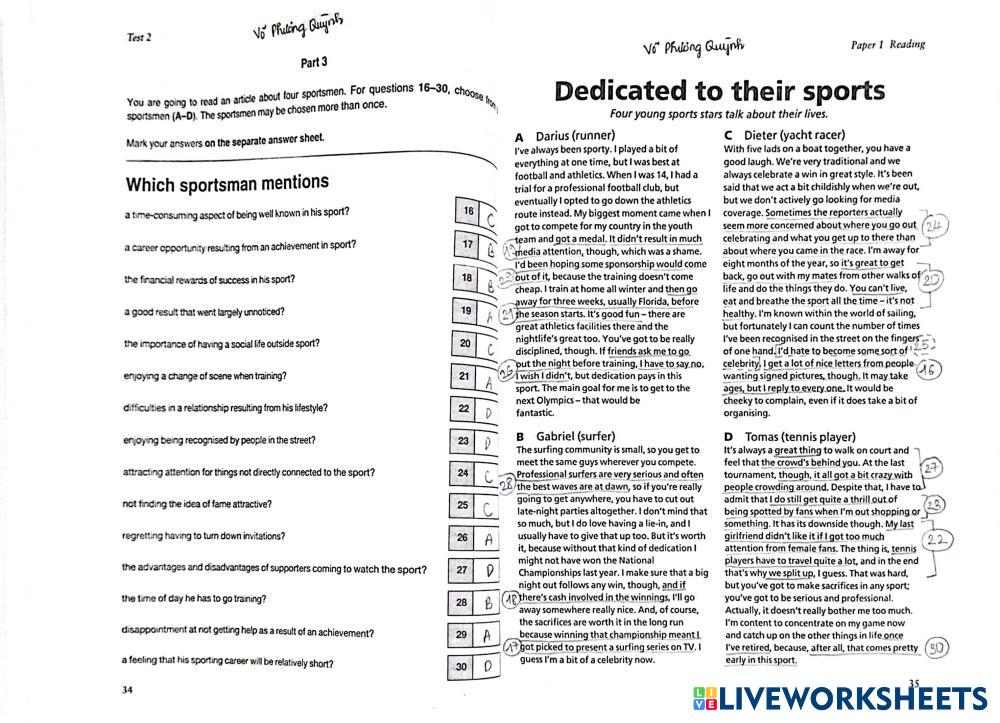 Created by phngqunh English Language High School 12th grade Reading Comprehension English Author's Instructions fill the letter My Google Classroom Courses × 0 classes selected (0 students total) Quick Access Select all classes (0 classes) All Classes Loading courses... Cancel Share Share to selected Course __COURSE_NAME__ __STUDENT_NAME__ (__STUDENT_EMAIL__) matching Download Worksheet Validation Check my answers Emails my answers to my teacher Full name Group/level School subject Teacher's email or key code Close Submit Validating worksheet... (12) Your answers have been sent to your teacher. Good luck! OK We encountered an error submitting your answers. Please try again. OK Advertisement | Go Ad Free Created by phngqunh English Language High School 12th grade Reading Comprehension English Author's Instructions fill the letter Explore Worksheets Reading practice English Language 12th grade Reading practice Reading Comprehension - English Language READING PASSAGE 1 You should spend about 20 minutes on Questions 1-13, which are based on Reading Passage 1 below. Tenses English Language 12th grade Tenses Reading Comprehension - English Language Read the question carefully and finish all exercises below: Grade09-WordForm 05 English Language 12th grade Grade09-WordForm 05 Reading Comprehension - English Language Grade09-WordForm 05 Grade09-WordForm 04 English Language 12th grade Grade09-WordForm 04 Reading Comprehension - English Language Grade09-WordForm 04