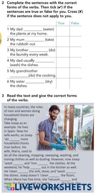 Exercise 2: Complete sentences with the correct forms of the verb, then tick on the corresponding boxes if they are TRUE or FALSE to you.