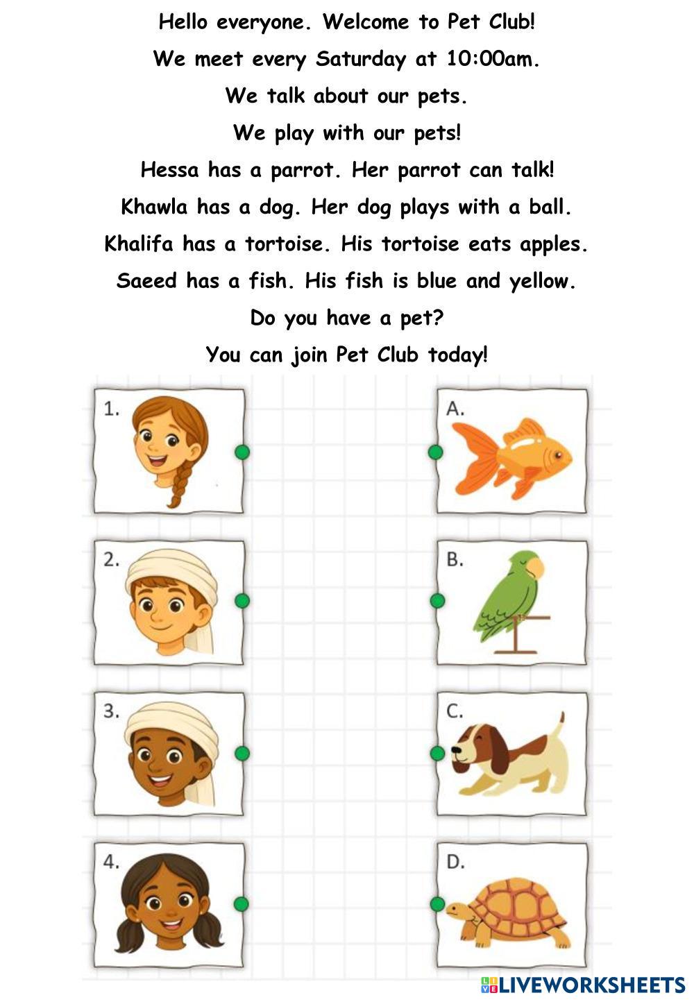 Created by T_Fatima English Language Elementary 1st grade Reading Comprehension English Author's Instructions read and match My Google Classroom Courses × 0 classes selected (0 students total) Quick Access Select all classes (0 classes) All Classes Loading courses... Cancel Share Share to selected Course __COURSE_NAME__ __STUDENT_NAME__ (__STUDENT_EMAIL__) read and match Download Worksheet Validation Check my answers Emails my answers to my teacher Full name Group/level School subject Teacher's email or key code Close Submit Validating worksheet... (12) Your answers have been sent to your teacher. Good luck! OK We encountered an error submitting your answers. Please try again. OK Advertisement | Go Ad Free Created by T_Fatima English Language Elementary 1st grade Reading Comprehension English Author's Instructions read and match Explore Worksheets The Note Story English Language 1st grade The Note Story Reading Comprehension - English Language Answer the following questions. MARTINA FUTBOLISTA English Language 1st grade MARTINA FUTBOLISTA Reading Comprehension - English Language ve el cuento de Martina futbolista y realiza el cuestionario. Comprensión lectora English Language 1st grade Comprensión lectora Reading Comprehension - English Language Seleccionar el final de frase correcto. Comprensión lectora 2 English Language 1st grade Comprensión lectora 2 Reading Comprehension - English Language Lee y selecciona la palabra correcta mirando el dibujo.