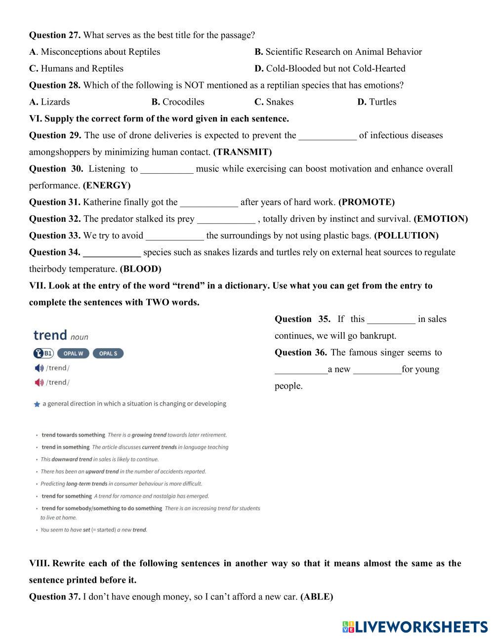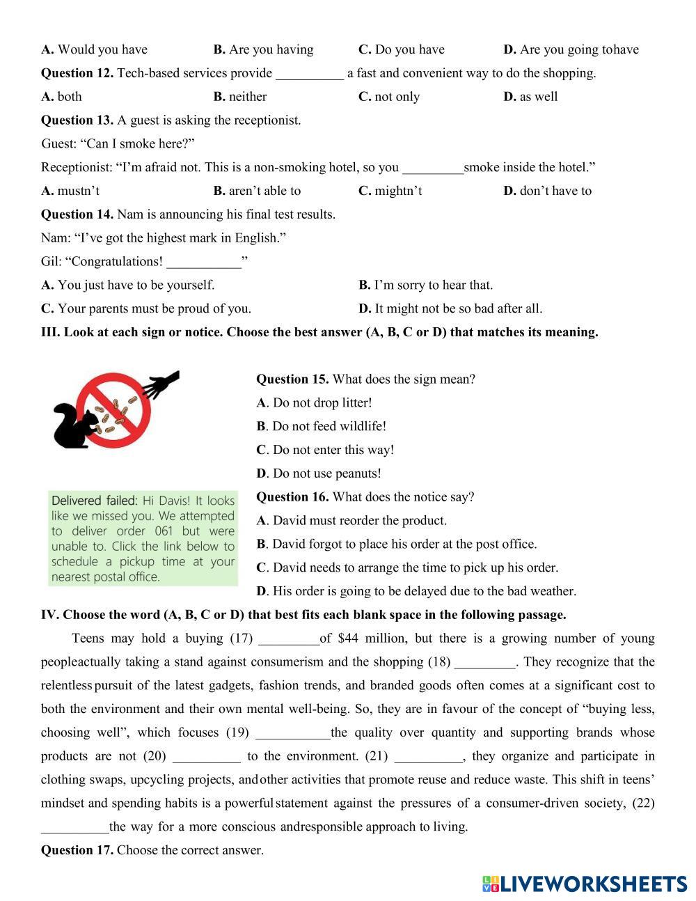 Created byAisha Truong English Language High School 10th grade Reading Comprehension English Author's Instructions Đề 11 My Google Classroom Courses × 0 classes selected (0 students total) Quick Access Select all classes (0 classes) All Classes Loading courses... Cancel Share Share to selected Course __COURSE_NAME__ __STUDENT_NAME__ (__STUDENT_EMAIL__) Dự đoán tuyển sinh vào 10 - 2026 Download Worksheet Validation Check my answers Emails my answers to my teacher Full name Group/level School subject Teacher's email or key code Close Submit Validating worksheet... (12) Your answers have been sent to your teacher. Good luck! OK We encountered an error submitting your answers. Please try again. OK Advertisement | Go Ad Free Created byAisha Truong English Language High School 10th grade Reading Comprehension English Author's Instructions Đề 11 Explore Worksheets Present Simple English Language 10th grade Present Simple Reading Comprehension - English Language Complete these exercises using present simple tense. Cloze Test English Language 10th grade Cloze Test Reading Comprehension - English Language Read Dự đoán tuyển sinh vào 10 - 2026 English Language 10th grade Dự đoán tuyển sinh vào 10 - 2026 Reading Comprehension - English Language Đề 12 Dự đoán tuyển sinh vào 10 - 2026 English Language 10th grade Dự đoán tuyển sinh vào 10 - 2026 Reading Comprehension - English Language Đề 10