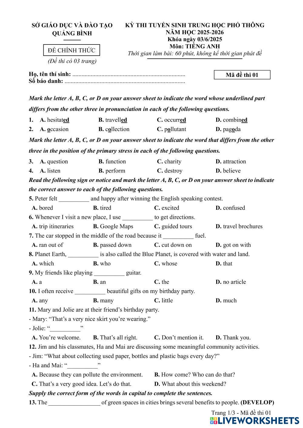 Test đầu vào