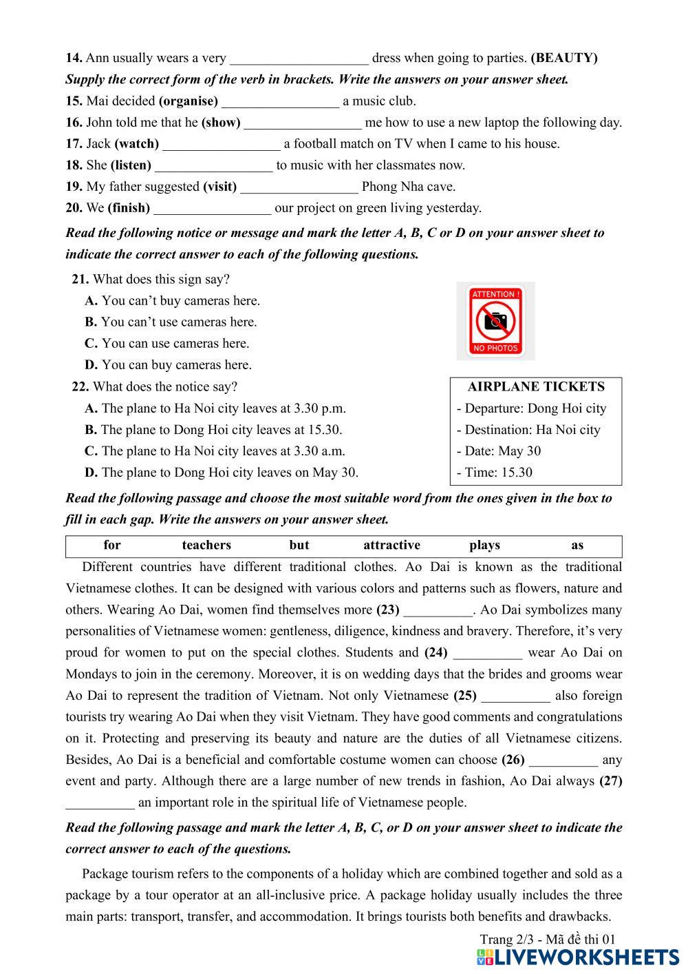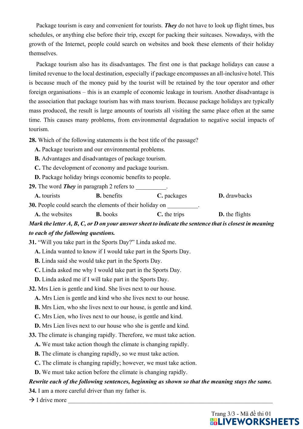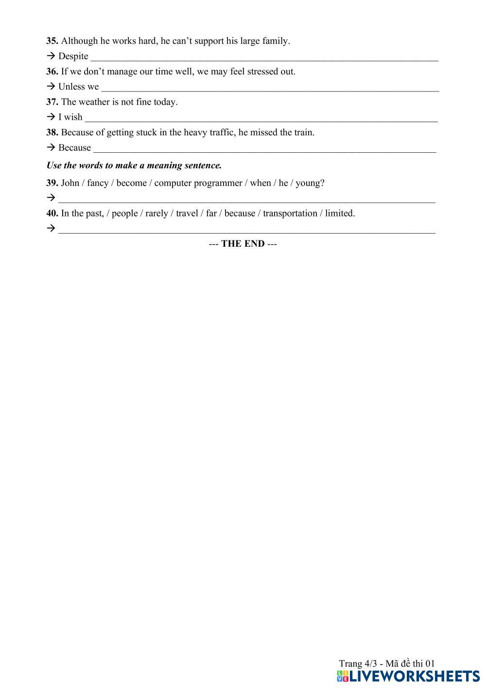 Complete the worksheet below.