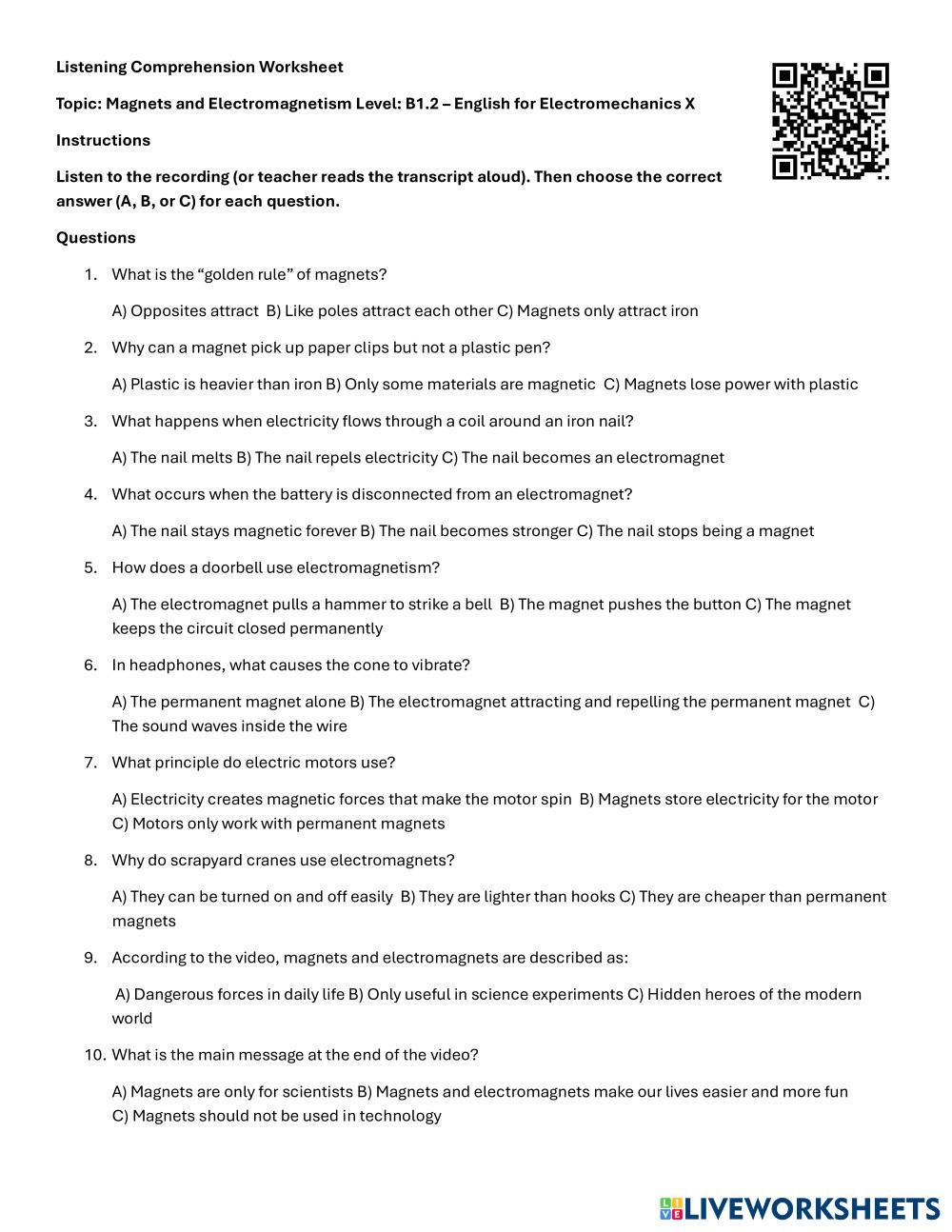 Listen to the recording (or teacher reads the transcript aloud). Then choose the correct answer (A, B, or C) for each question.
