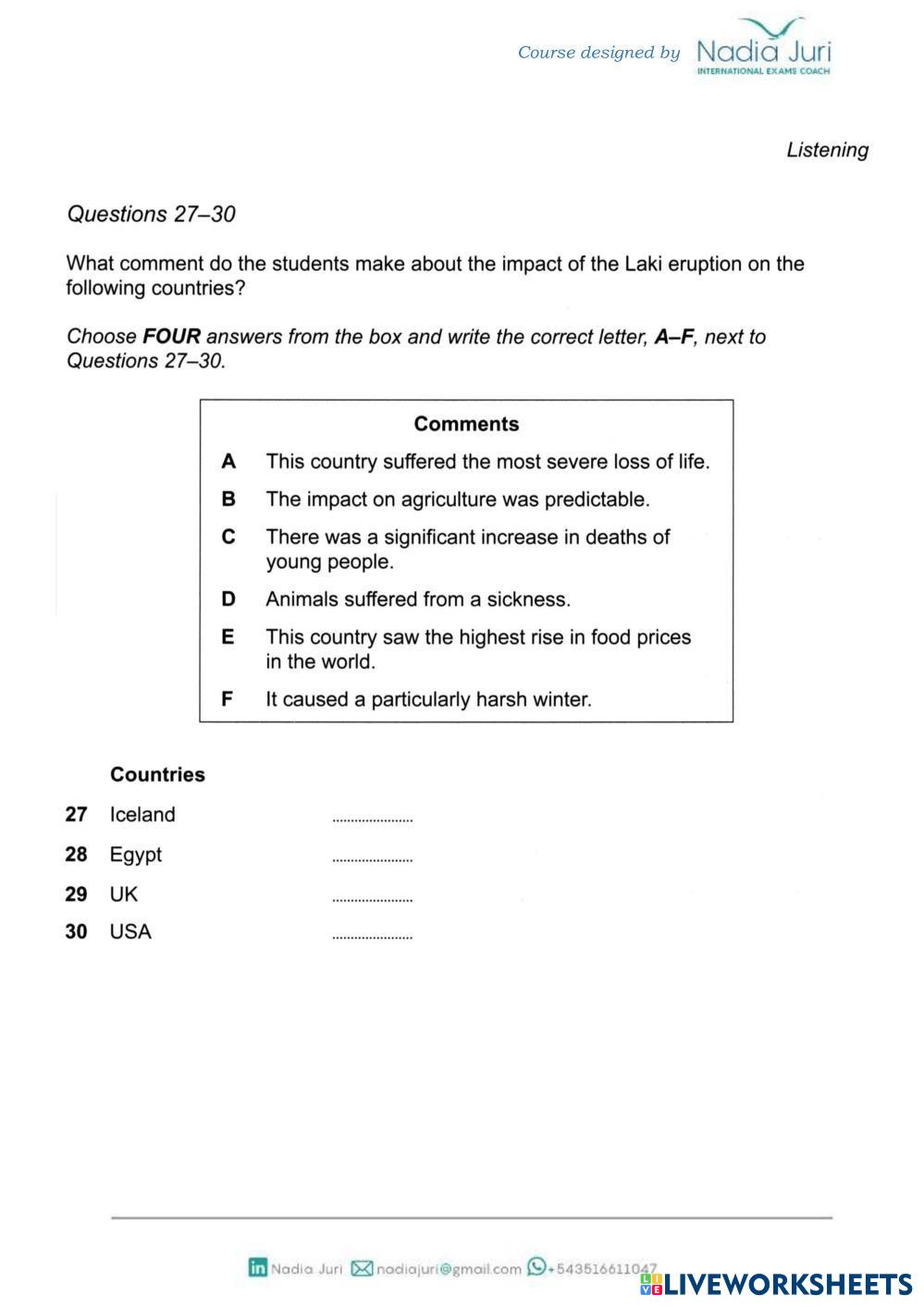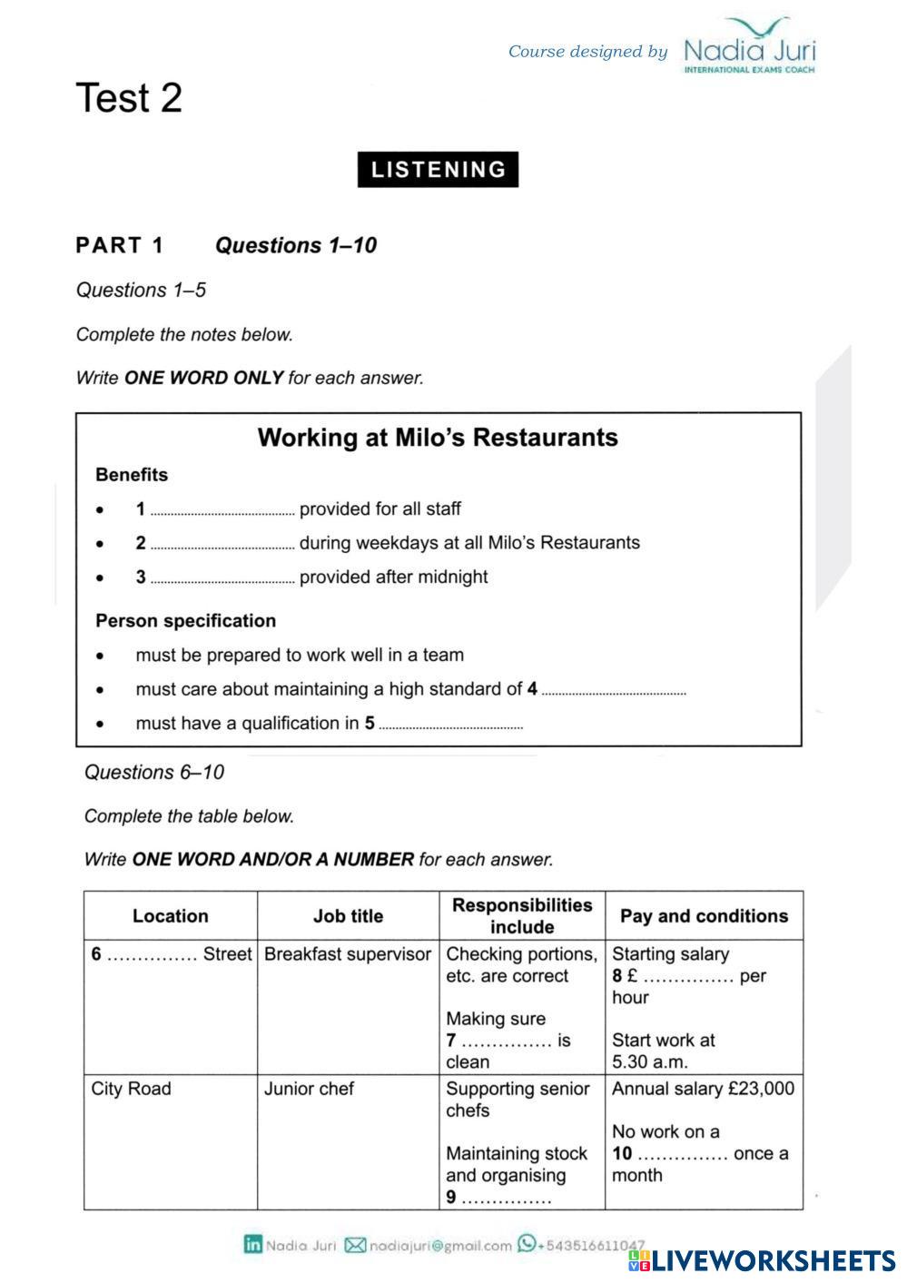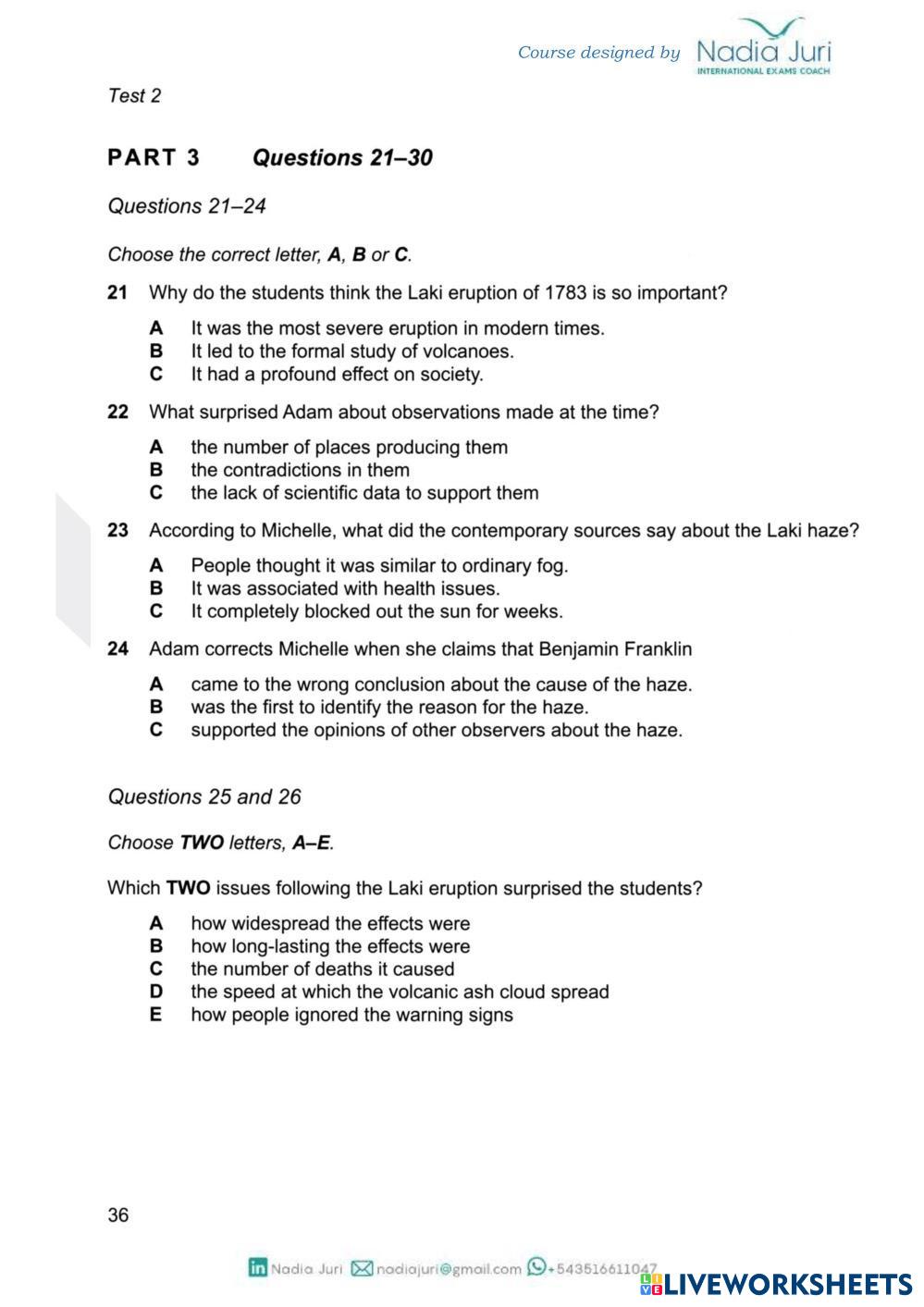 Created by NADIAJURI1 English Language High School 12th grade Research English Author's Instructions IELTS EXAM LISTENING My Google Classroom Courses × 0 classes selected (0 students total) Quick Access Select all classes (0 classes) All Classes Loading courses... Cancel Share Share to selected Course __COURSE_NAME__ __STUDENT_NAME__ (__STUDENT_EMAIL__) IELTS 18 GENERAL TEST 2 LISTENING Download Worksheet Validation Check my answers Emails my answers to my teacher Full name Group/level School subject Teacher's email or key code Close Submit Validating worksheet... (12) Your answers have been sent to your teacher. Good luck! OK We encountered an error submitting your answers. Please try again. OK Advertisement | Go Ad Free Created by NADIAJURI1 English Language High School 12th grade Research English Author's Instructions IELTS EXAM LISTENING Explore Worksheets Exercise English Language 12th grade Exercise Research - English Language abc Relative clause English Language 12th grade Relative clause Research - English Language Relative clause tipologías textuales. English Language 12th grade tipologías textuales. Research - English Language tipoloías textuales grammar English Language 12th grade grammar Research - English Language choose the correct answer