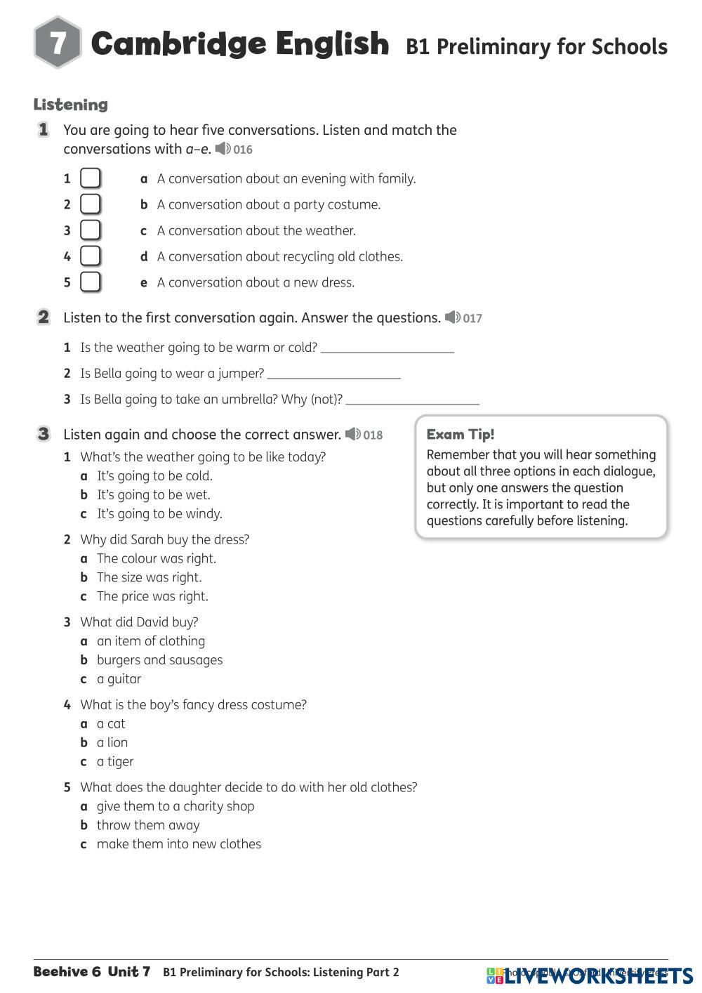 Created by jade249 English Language Middle School 6th grade Vocabulary English Author's Instructions listening My Google Classroom Courses × 0 classes selected (0 students total) Quick Access Select all classes (0 classes) All Classes Loading courses... Cancel Share Share to selected Course __COURSE_NAME__ __STUDENT_NAME__ (__STUDENT_EMAIL__) BH 6 - U7 - LISTENING Download Worksheet Validation Check my answers Emails my answers to my teacher Full name Group/level School subject Teacher's email or key code Close Submit Validating worksheet... (12) Your answers have been sent to your teacher. Good luck! OK We encountered an error submitting your answers. Please try again. OK Advertisement | Go Ad Free Created by jade249 English Language Middle School 6th grade Vocabulary English Author's Instructions listening Explore Worksheets GRADE 6 MID-TERM TEST 1 (U1,2,3) English Language 6th grade GRADE 6 MID-TERM TEST 1 (U1,2,3) Vocabulary - English Language U123 A1.1 L13 English Language 6th grade A1.1 L13 Vocabulary - English Language . Lớp 6 - Đề thi thử HT (25-26) English Language 6th grade Lớp 6 - Đề thi thử HT (25-26) Vocabulary - English Language practice Feelings WS 1 English Language 6th grade Feelings WS 1 Vocabulary - English Language Write the correct answer.