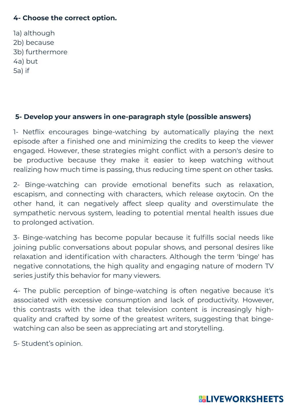 Created byAngeles English Language High School 12th grade Vocabulary English Author's Instructions - My Google Classroom Courses × 0 classes selected (0 students total) Quick Access Select all classes (0 classes) All Classes Loading courses... Cancel Share Share to selected Course __COURSE_NAME__ __STUDENT_NAME__ (__STUDENT_EMAIL__) Unit 2 - B2 Download Worksheet Validation Check my answers Emails my answers to my teacher Full name Group/level School subject Teacher's email or key code Close Submit Validating worksheet... (12) Your answers have been sent to your teacher. Good luck! OK We encountered an error submitting your answers. Please try again. OK Advertisement | Go Ad Free Created byAngeles English Language High School 12th grade Vocabulary English Author's Instructions - Explore Worksheets Adverb claise English Language 12th grade Adverb claise Vocabulary - English Language Practice identifying and using adverb clauses correctly. You will choose, complete, and create sentences that show reason, purpose, condition, and place. Vocabulary 4b Ex. 7 English Language 12th grade Vocabulary 4b Ex. 7 Vocabulary - English Language Answer! 4b- Vocabulary Ex. 6 English Language 12th grade 4b- Vocabulary Ex. 6 Vocabulary - English Language Answer! 4b- Vocabulary Ex. 5 English Language 12th grade 4b- Vocabulary Ex. 5 Vocabulary - English Language Answer!