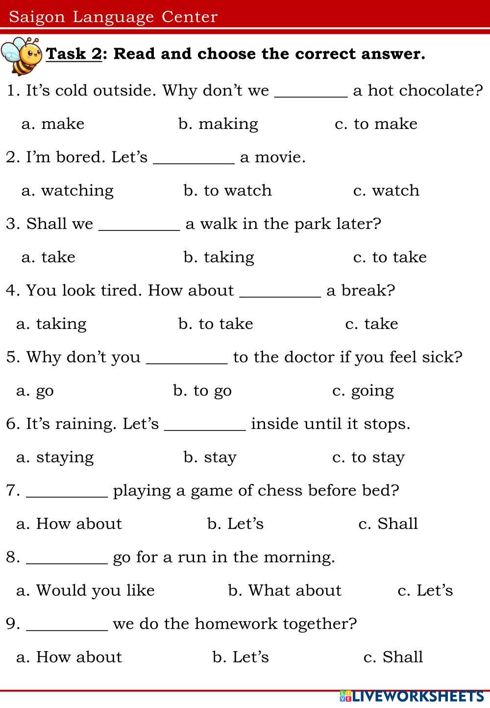 Created by Icy2002 English Language Middle School 7th grade Vocabulary English Author's Instructions Vocabulary and Grammar My Google Classroom Courses × 0 classes selected (0 students total) Quick Access Select all classes (0 classes) All Classes Loading courses... Cancel Share Share to selected Course __COURSE_NAME__ __STUDENT_NAME__ (__STUDENT_EMAIL__) FFs4-Unit 4 Download Worksheet Validation Check my answers Emails my answers to my teacher Full name Group/level School subject Teacher's email or key code Close Submit Validating worksheet... (12) Your answers have been sent to your teacher. Good luck! OK We encountered an error submitting your answers. Please try again. OK Advertisement | Go Ad Free Created by Icy2002 English Language Middle School 7th grade Vocabulary English Author's Instructions Vocabulary and Grammar Explore Worksheets Unit 5_Lesson 1_English Grade 7 English Language 7th grade Unit 5_Lesson 1_English Grade 7 Vocabulary - English Language - Học sinh làm bài và nộp trước buổi học tiếp theo - Nộp bài ghi rõ tên và lớp - Câu trả lời không sử dụng dạng viết tắt (n't, she's, I'm, They're, I'll, I've, ...) - Đối với câu trả lời bắt buộc sử dụng dạng sở hữu cách, dùng dấu cách thay cho dấu ' (VD: My father's name => My father s name) Online_Foreign Teacher_S7_W13_U1&2_Vocabulary Revision English Language 7th grade Online_Foreign Teacher_S7_W13_U1&2_Vocabulary Revision Vocabulary - English Language Online_Foreign Teacher_S7_W13_U1&2_Vocabulary Revision Seasons English Language 7th grade Seasons Vocabulary - English Language Unjumble the letters to spell each word Weather English Language 7th grade Weather Vocabulary - English Language Look at the pictures and write the names of the weather words.