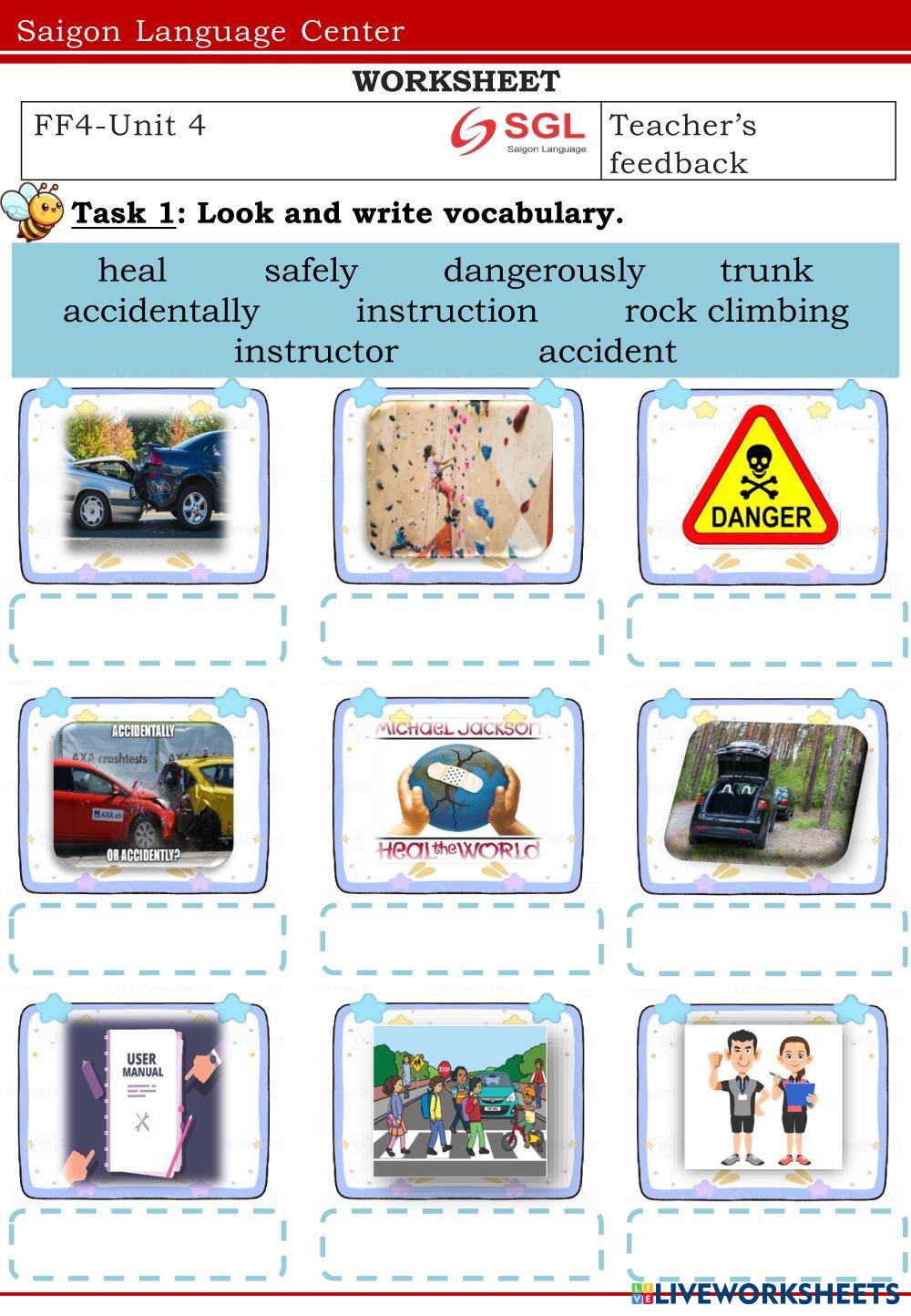 Created by Icy2002 English Language Middle School 7th grade Vocabulary English Author's Instructions Vocabulary and Listening My Google Classroom Courses × 0 classes selected (0 students total) Quick Access Select all classes (0 classes) All Classes Loading courses... Cancel Share Share to selected Course __COURSE_NAME__ __STUDENT_NAME__ (__STUDENT_EMAIL__) FF4-Unit 4 Download Worksheet Validation Check my answers Emails my answers to my teacher Full name Group/level School subject Teacher's email or key code Close Submit Validating worksheet... (12) Your answers have been sent to your teacher. Good luck! OK We encountered an error submitting your answers. Please try again. OK Advertisement | Go Ad Free Created by Icy2002 English Language Middle School 7th grade Vocabulary English Author's Instructions Vocabulary and Listening Explore Worksheets My Daily Routine English Language 7th grade My Daily Routine Vocabulary - English Language Read each exercise carefully. Complete the worksheet by following the directions in every section. Type your answers in the spaces provided. Check your answers before submitting. Ficha en Francés de LOS DIAS DE LA SEMANA English Language 7th grade Ficha en Francés de LOS DIAS DE LA SEMANA Vocabulary - English Language Haz la ficha, y te ayudara a repasar los dias de la semana en Francés Review Mid-term Test English Language 7th grade Review Mid-term Test Vocabulary - English Language Practicing (Review) Phonetics English Language 7th grade (Review) Phonetics Vocabulary - English Language Practicing