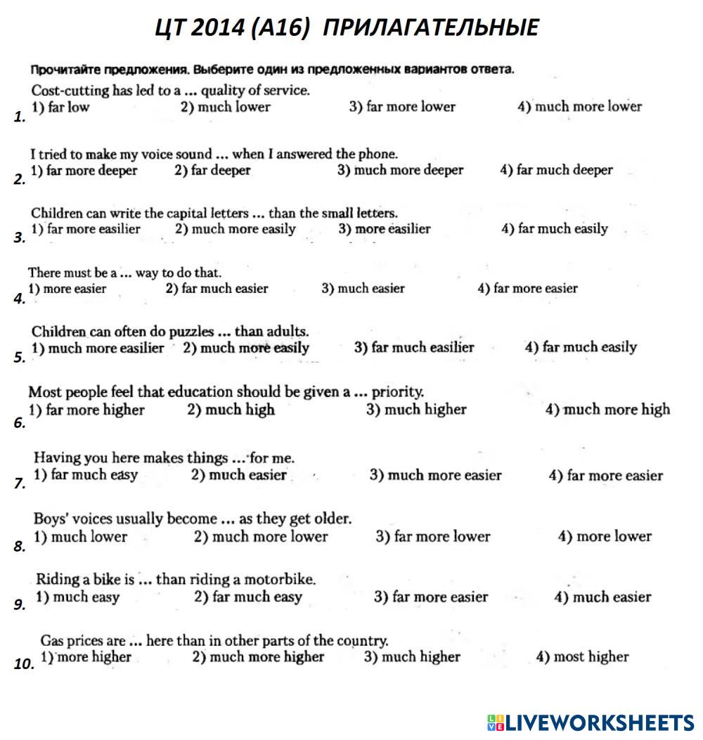 Created by Mika_tima English Language High School 12th grade Vocabulary English Author's Instructions Choose the right variant My Google Classroom Courses × 0 classes selected (0 students total) Quick Access Select all classes (0 classes) All Classes Loading courses... Cancel Share Share to selected Course __COURSE_NAME__ __STUDENT_NAME__ (__STUDENT_EMAIL__) Degrees of Comparison ЦТ 2024 Download Worksheet Validation Check my answers Emails my answers to my teacher Full name Group/level School subject Teacher's email or key code Close Submit Validating worksheet... (12) Your answers have been sent to your teacher. Good luck! OK We encountered an error submitting your answers. Please try again. OK Advertisement | Go Ad Free Created by Mika_tima English Language High School 12th grade Vocabulary English Author's Instructions Choose the right variant Explore Worksheets Translation Exercise: Vessel Types English Language 12th grade Translation Exercise: Vessel Types Vocabulary - English Language COMPLETE THE FOLLOWING TRANSLATIONS TO CREATE A BILINGUAL TEXT Listening test 1 - Daily routine English Language 12th grade Listening test 1 - Daily routine Vocabulary - English Language Listen and choose the correct answer Test Freddy English Language 12th grade Test Freddy Vocabulary - English Language Listen and choose the answer Compounds English Language 12th grade Compounds Vocabulary - English Language Read