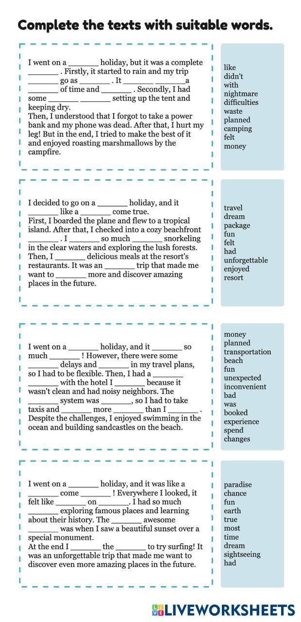 Complete the texts with suitable words.