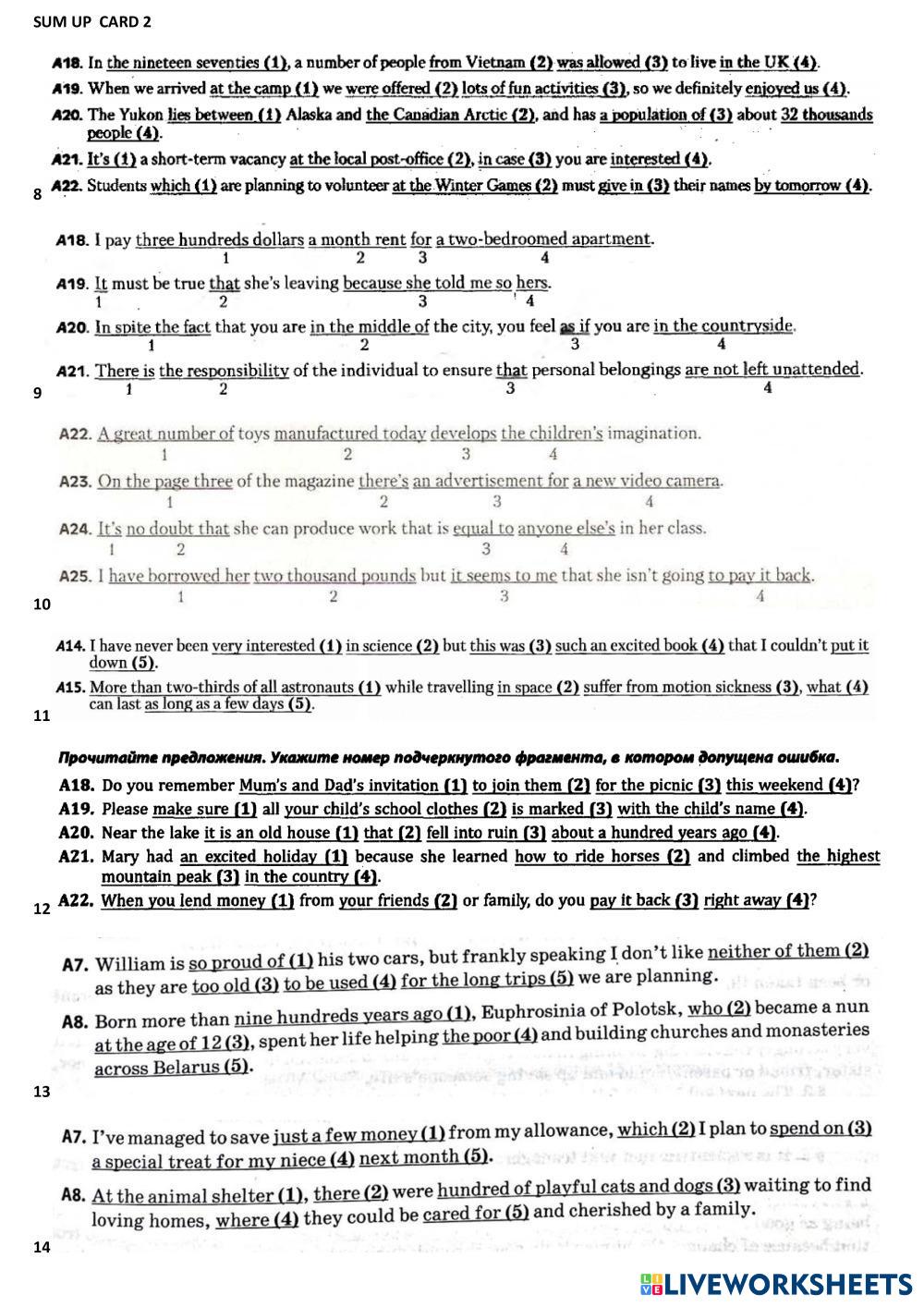 Created by Mika_tima English Language High School 12th grade Vocabulary English Author's Instructions Выберите фрагмент, в котором допущена ошибка My Google Classroom Courses × 0 classes selected (0 students total) Quick Access Select all classes (0 classes) All Classes Loading courses... Cancel Share Share to selected Course __COURSE_NAME__ __STUDENT_NAME__ (__STUDENT_EMAIL__) Ошибки ЦТ SUM UP 2 Download Worksheet Validation Check my answers Emails my answers to my teacher Full name Group/level School subject Teacher's email or key code Close Submit Validating worksheet... (12) Your answers have been sent to your teacher. Good luck! OK We encountered an error submitting your answers. Please try again. OK Advertisement | Go Ad Free Created by Mika_tima English Language High School 12th grade Vocabulary English Author's Instructions Выберите фрагмент, в котором допущена ошибка Explore Worksheets Translation Exercise: Vessel Types English Language 12th grade Translation Exercise: Vessel Types Vocabulary - English Language COMPLETE THE FOLLOWING TRANSLATIONS TO CREATE A BILINGUAL TEXT Listening test 1 - Daily routine English Language 12th grade Listening test 1 - Daily routine Vocabulary - English Language Listen and choose the correct answer Test Freddy English Language 12th grade Test Freddy Vocabulary - English Language Listen and choose the answer Compounds English Language 12th grade Compounds Vocabulary - English Language Read