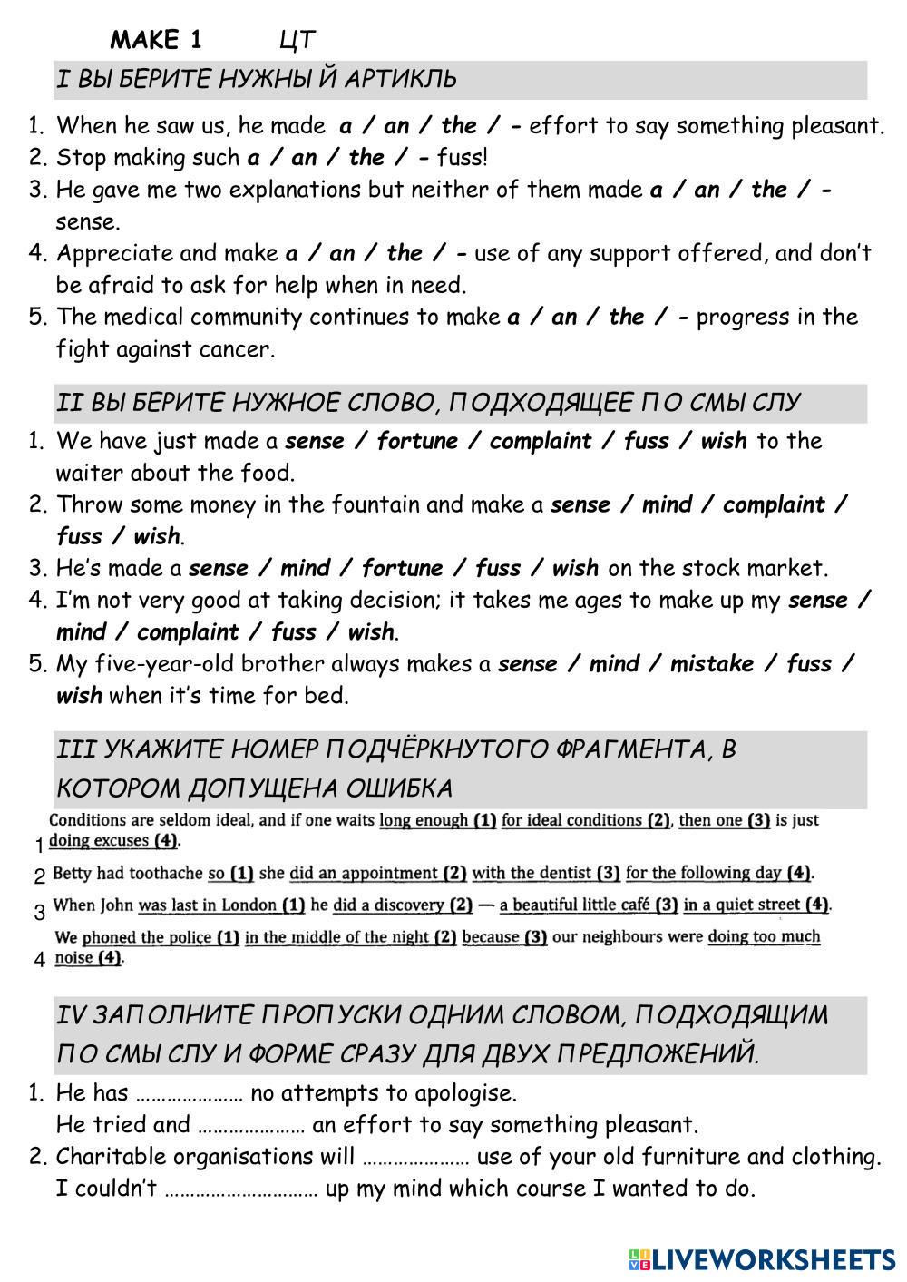 Created by Mika_tima English Language High School 12th grade Vocabulary English Author's Instructions Do the test My Google Classroom Courses × 0 classes selected (0 students total) Quick Access Select all classes (0 classes) All Classes Loading courses... Cancel Share Share to selected Course __COURSE_NAME__ __STUDENT_NAME__ (__STUDENT_EMAIL__) MAKE ЦТ Download Worksheet Validation Check my answers Emails my answers to my teacher Full name Group/level School subject Teacher's email or key code Close Submit Validating worksheet... (12) Your answers have been sent to your teacher. Good luck! OK We encountered an error submitting your answers. Please try again. OK Advertisement | Go Ad Free Created by Mika_tima English Language High School 12th grade Vocabulary English Author's Instructions Do the test Explore Worksheets Translation Exercise: Vessel Types English Language 12th grade Translation Exercise: Vessel Types Vocabulary - English Language COMPLETE THE FOLLOWING TRANSLATIONS TO CREATE A BILINGUAL TEXT Listening test 1 - Daily routine English Language 12th grade Listening test 1 - Daily routine Vocabulary - English Language Listen and choose the correct answer Test Freddy English Language 12th grade Test Freddy Vocabulary - English Language Listen and choose the answer Compounds English Language 12th grade Compounds Vocabulary - English Language Read