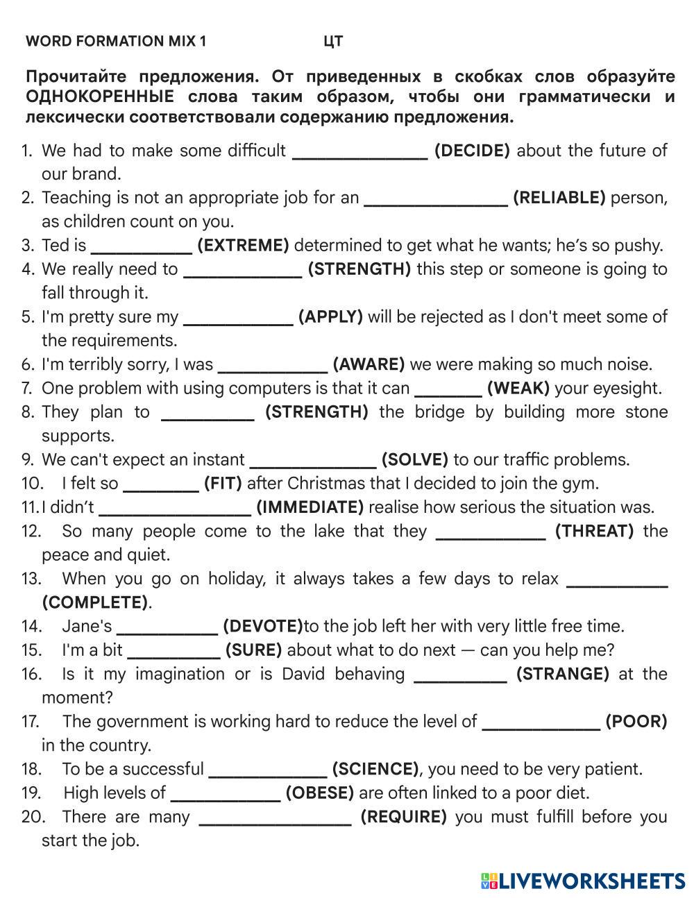Created by Mika_tima English Language High School 12th grade Vocabulary English Author's Instructions FORM THE WORDS My Google Classroom Courses × 0 classes selected (0 students total) Quick Access Select all classes (0 classes) All Classes Loading courses... Cancel Share Share to selected Course __COURSE_NAME__ __STUDENT_NAME__ (__STUDENT_EMAIL__) Wordwormation MIX 1 ЦТ Download Worksheet Validation Check my answers Emails my answers to my teacher Full name Group/level School subject Teacher's email or key code Close Submit Validating worksheet... (12) Your answers have been sent to your teacher. Good luck! OK We encountered an error submitting your answers. Please try again. OK Advertisement | Go Ad Free Created by Mika_tima English Language High School 12th grade Vocabulary English Author's Instructions FORM THE WORDS Explore Worksheets Translation Exercise: Vessel Types English Language 12th grade Translation Exercise: Vessel Types Vocabulary - English Language COMPLETE THE FOLLOWING TRANSLATIONS TO CREATE A BILINGUAL TEXT Listening test 1 - Daily routine English Language 12th grade Listening test 1 - Daily routine Vocabulary - English Language Listen and choose the correct answer Test Freddy English Language 12th grade Test Freddy Vocabulary - English Language Listen and choose the answer Compounds English Language 12th grade Compounds Vocabulary - English Language Read