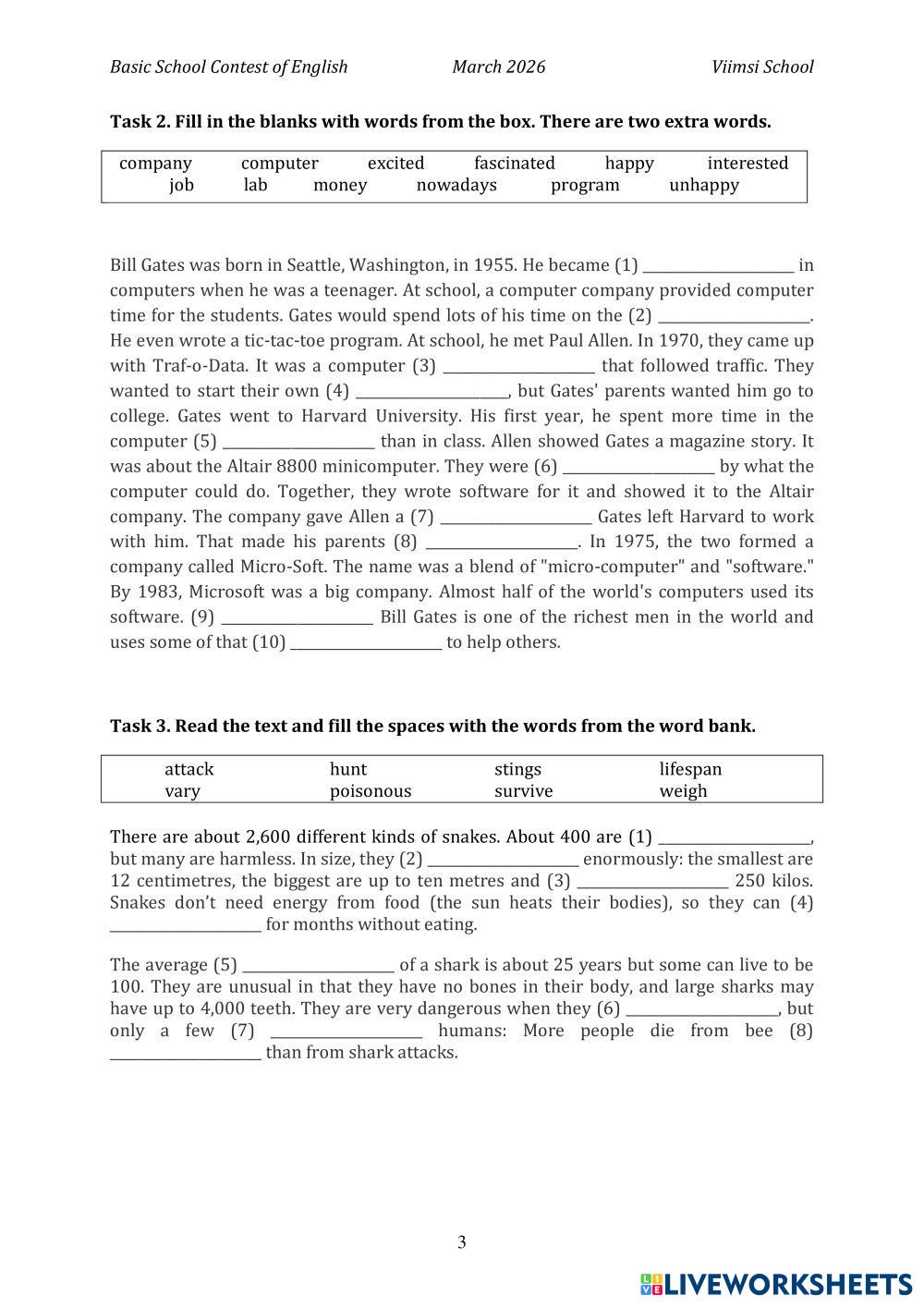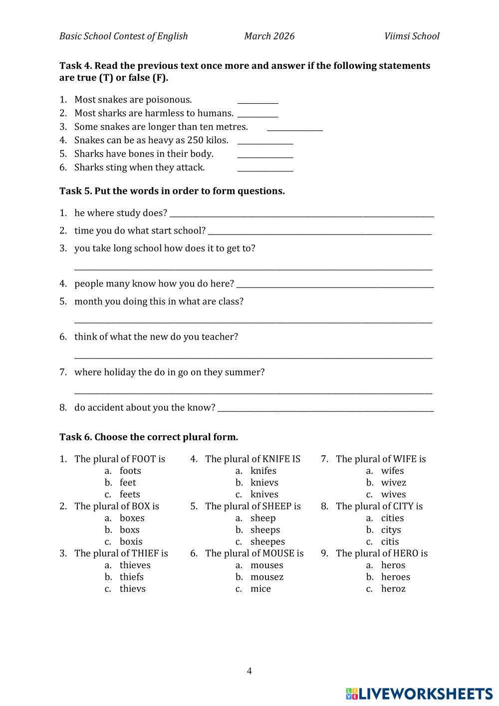 Created by laurase English Language Middle School 6th grade Vocabulary English Author's Instructions Answer the questions My Google Classroom Courses × 0 classes selected (0 students total) Quick Access Select all classes (0 classes) All Classes Loading courses... Cancel Share Share to selected Course __COURSE_NAME__ __STUDENT_NAME__ (__STUDENT_EMAIL__) Year 5 Olympiad Download Worksheet Validation Check my answers Emails my answers to my teacher Full name Group/level School subject Teacher's email or key code Close Submit Validating worksheet... (12) Your answers have been sent to your teacher. Good luck! OK We encountered an error submitting your answers. Please try again. OK Advertisement | Go Ad Free Created by laurase English Language Middle School 6th grade Vocabulary English Author's Instructions Answer the questions Explore Worksheets CAMBRIDGE VOCABULARY KET: SERVICES English Language 6th grade CAMBRIDGE VOCABULARY KET: SERVICES Vocabulary - English Language Name the pictures or complete the sentences. CAMBRIDGE VOCABULARY KET: SERVICES English Language 6th grade CAMBRIDGE VOCABULARY KET: SERVICES Vocabulary - English Language Name the pictures or complete the sentences. Heroes English Language 6th grade Heroes Vocabulary - English Language Match Worksheet 2-G6 English Language 6th grade Worksheet 2-G6 Vocabulary - English Language Bác Huyền