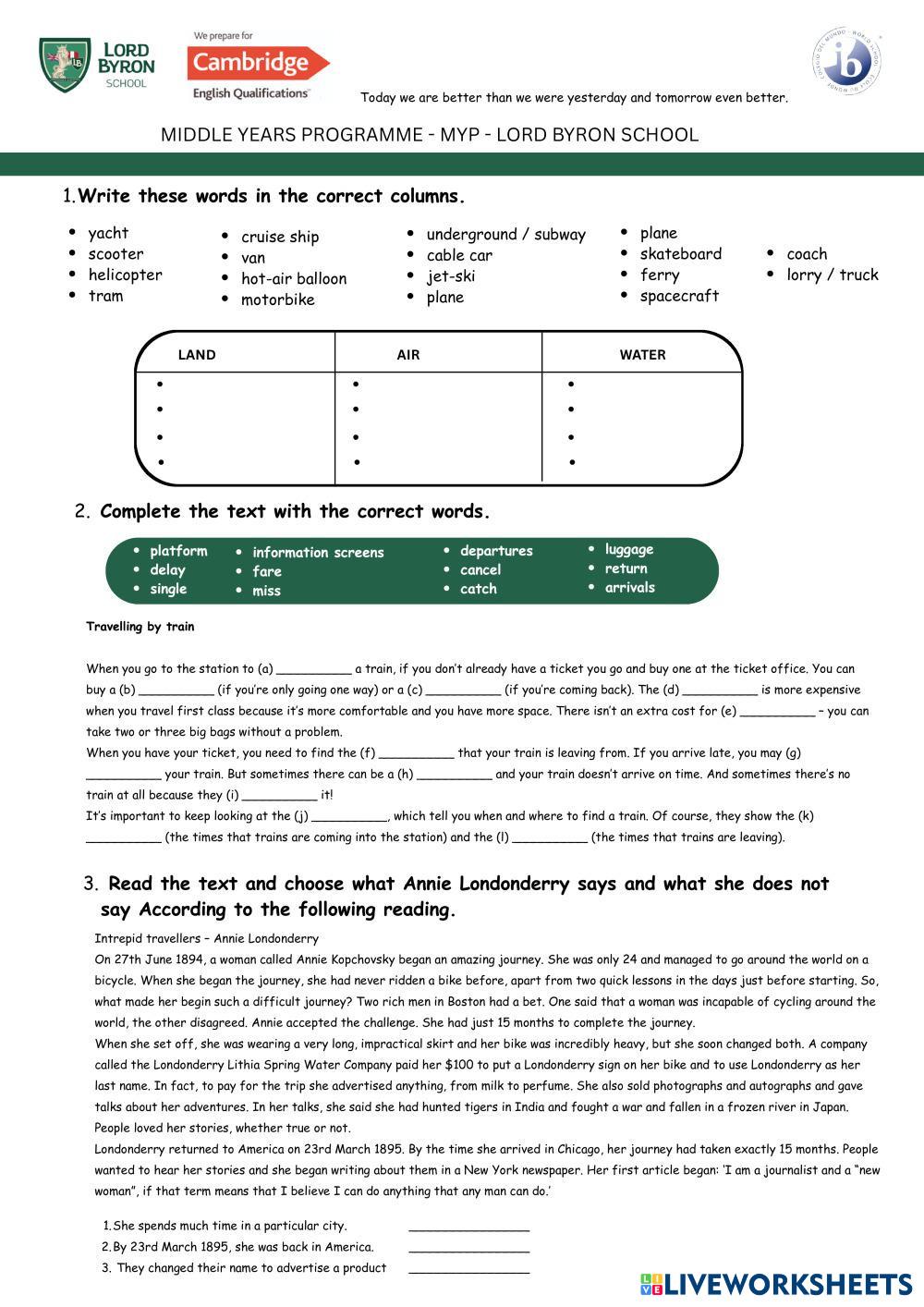 Created by neomack English Language Middle School 8th grade Vocabulary English Author's Instructions READ AND CAREFULLY FOLLOW THE INSTRUCTIONS My Google Classroom Courses × 0 classes selected (0 students total) Quick Access Select all classes (0 classes) All Classes Loading courses... Cancel Share Share to selected Course __COURSE_NAME__ __STUDENT_NAME__ (__STUDENT_EMAIL__) TYPES OF TRANSPORT Download Worksheet Validation Check my answers Emails my answers to my teacher Full name Group/level School subject Teacher's email or key code Close Submit Validating worksheet... (12) Your answers have been sent to your teacher. Good luck! OK We encountered an error submitting your answers. Please try again. OK Advertisement | Go Ad Free Created by neomack English Language Middle School 8th grade Vocabulary English Author's Instructions READ AND CAREFULLY FOLLOW THE INSTRUCTIONS Explore Worksheets Art in the open English Language 8th grade Art in the open Vocabulary - English Language Match each word with its meaning مكونات الجدول English Language 8th grade مكونات الجدول Vocabulary - English Language اسحب الكلمات لمكانها الصحيح Online_Foreign Teacher_S8_W28_U8_Vocabulary 2 & FCE Speaking English Language 8th grade Online_Foreign Teacher_S8_W28_U8_Vocabulary 2 & FCE Speaking Vocabulary - English Language Online_Foreign Teacher_S8_W28_U8_Vocabulary 2 & FCE Speaking KATA KERJA English Language 8th grade KATA KERJA Vocabulary - English Language Kata kerja aktif