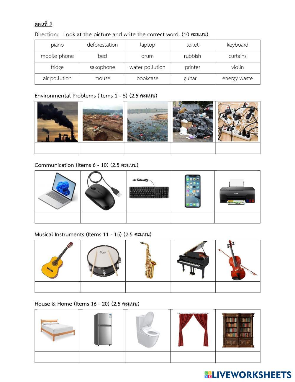 จงเติมคำศัพท์ลงในช่องว่างใต้รูปภาพให้ถูกต้อง