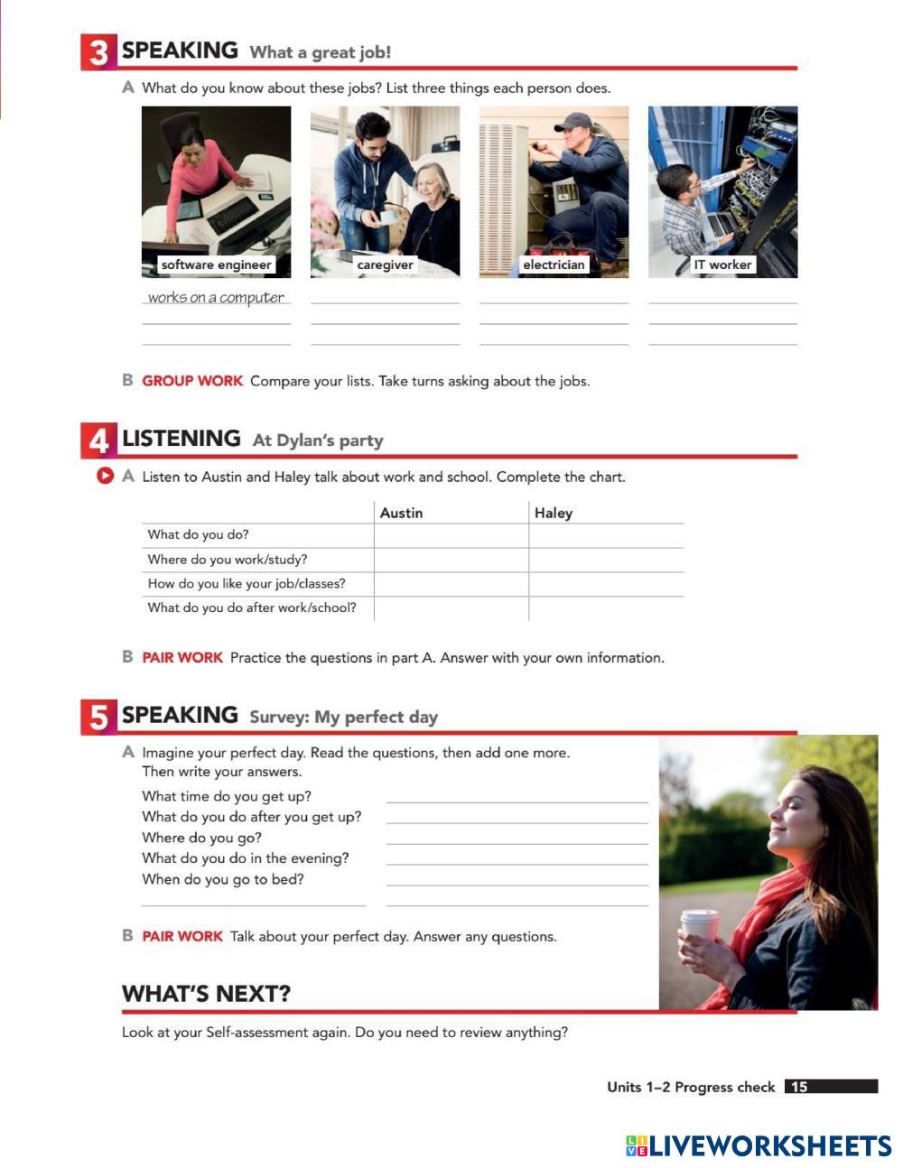 The objective is that students comprehend "What do they do for living?" and listen to the vocabulary given.