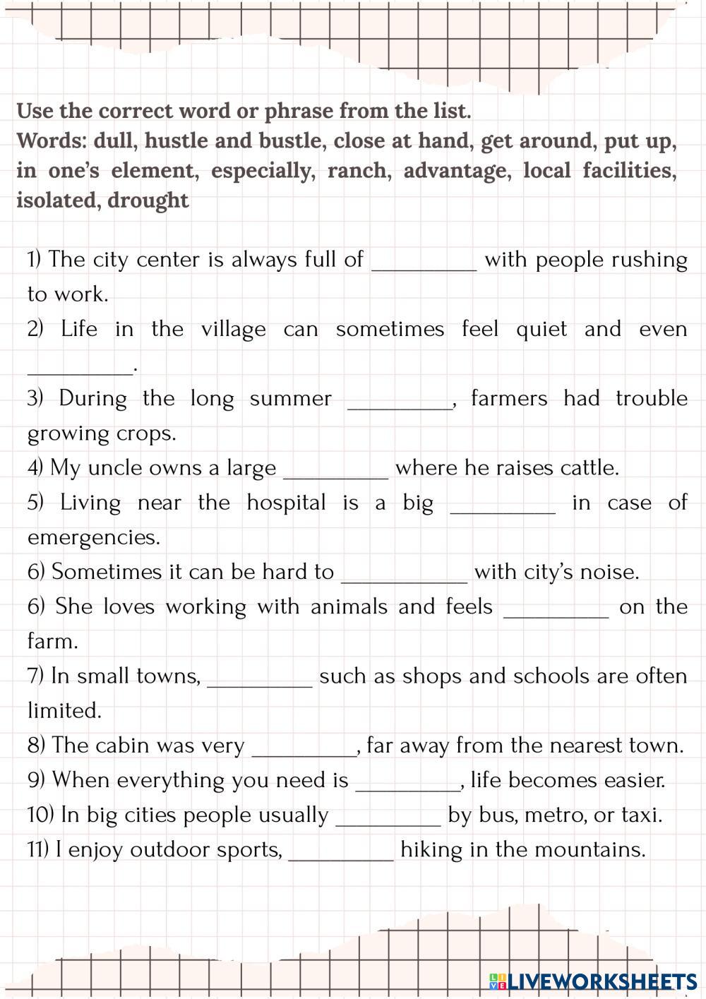 Write the right word into the according sentence