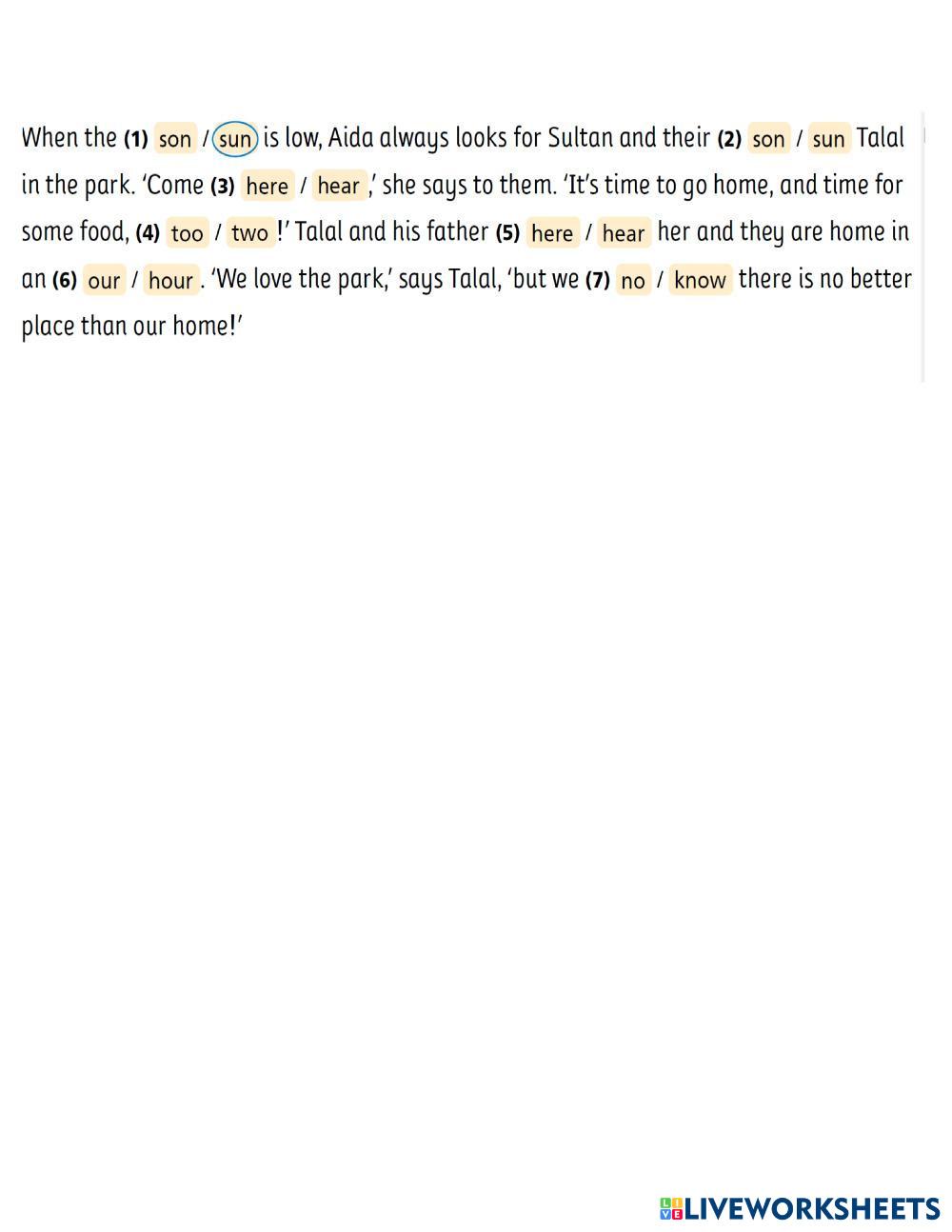 Created by fatma55 English Language Middle School 7th grade Vocabulary English Author's Instructions Ss choose the correct answer My Google Classroom Courses × 0 classes selected (0 students total) Quick Access Select all classes (0 classes) All Classes Loading courses... Cancel Share Share to selected Course __COURSE_NAME__ __STUDENT_NAME__ (__STUDENT_EMAIL__) Homophony Download Worksheet Validation Check my answers Emails my answers to my teacher Full name Group/level School subject Teacher's email or key code Close Submit Validating worksheet... (12) Your answers have been sent to your teacher. Good luck! OK We encountered an error submitting your answers. Please try again. OK Advertisement | Go Ad Free Created by fatma55 English Language Middle School 7th grade Vocabulary English Author's Instructions Ss choose the correct answer Explore Worksheets Idioms in the song "all of You" English Language 7th grade Idioms in the song "all of You" Vocabulary - English Language Practice our idioms! At the grocers-عِندَ البقال English Language 7th grade At the grocers-عِندَ البقال Vocabulary - English Language Dear students, Please answer the classwork . Thanks. Staycations English Language 7th grade Staycations Vocabulary - English Language Follow the instructions. PROCESS OF CULTIVATION OF CROPS English Language 7th grade PROCESS OF CULTIVATION OF CROPS Vocabulary - English Language DRAG THE PICTURES TO THE CORRESPONDING PLACE IN ORDER.