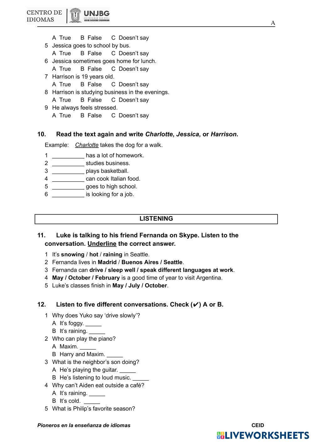 Created by alexthetheacher English Language High School 11th grade Vocabulary English Author's Instructions WRITE THE ANSWERS My Google Classroom Courses × 0 classes selected (0 students total) Quick Access Select all classes (0 classes) All Classes Loading courses... Cancel Share Share to selected Course __COURSE_NAME__ __STUDENT_NAME__ (__STUDENT_EMAIL__) third quizz Download Worksheet Validation Check my answers Emails my answers to my teacher Full name Group/level School subject Teacher's email or key code Close Submit Validating worksheet... (12) Your answers have been sent to your teacher. Good luck! OK We encountered an error submitting your answers. Please try again. OK Advertisement | Go Ad Free Created by alexthetheacher English Language High School 11th grade Vocabulary English Author's Instructions WRITE THE ANSWERS Explore Worksheets Band III – List C – Unit 2 - Test (cash - distinguish) English Language 11th grade Band III – List C – Unit 2 - Test (cash - distinguish) Vocabulary - English Language Complete the test Test 1 English Language 11th grade Test 1 Vocabulary - English Language Choose the best answer. FIRST QUIZZ - THIRD CYCLE English Language 11th grade FIRST QUIZZ - THIRD CYCLE Vocabulary - English Language ANSWERS THE QUESTIONS Unit 7 - Lesson 2 English Language 11th grade Unit 7 - Lesson 2 Vocabulary - English Language -