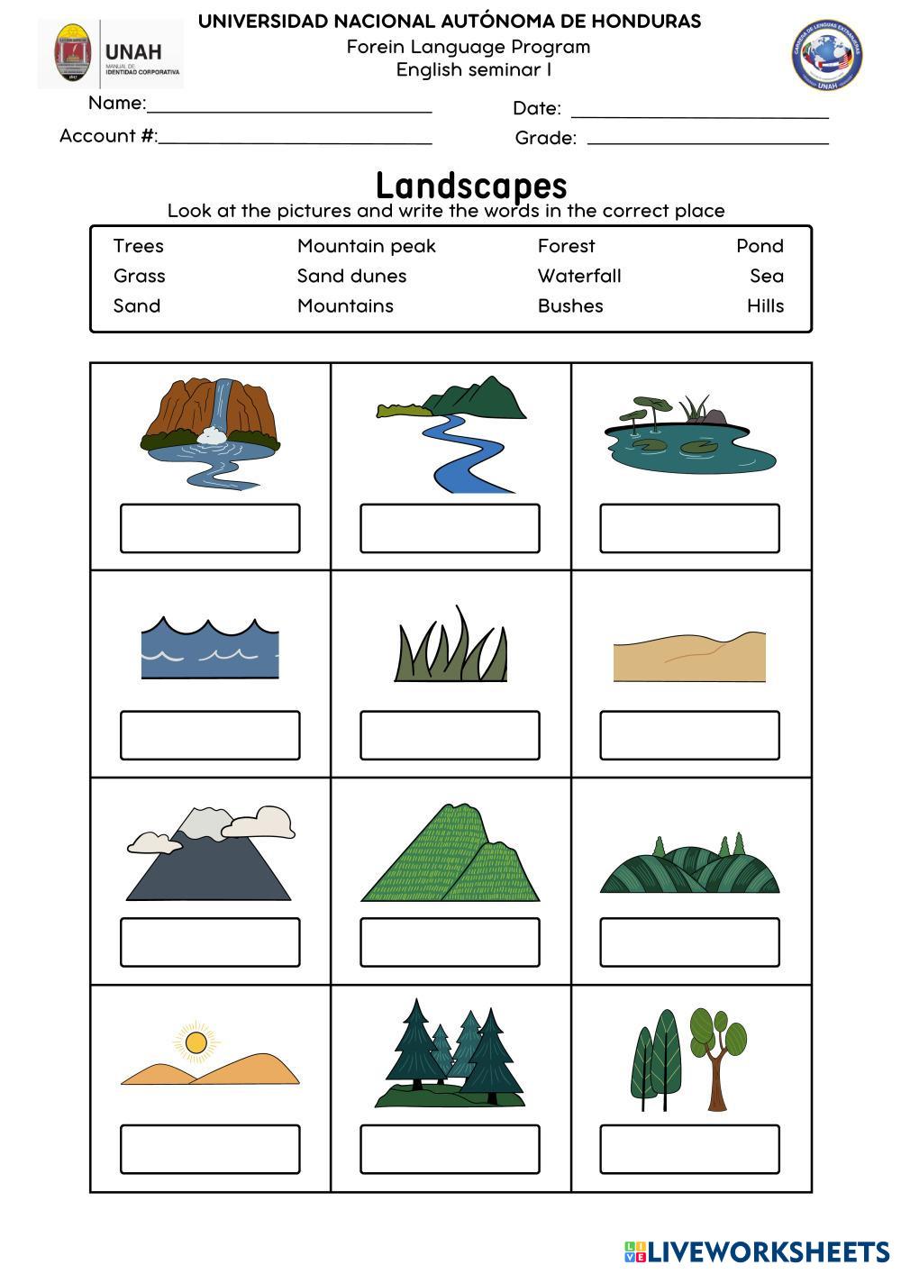 Name the different types of landscapes.