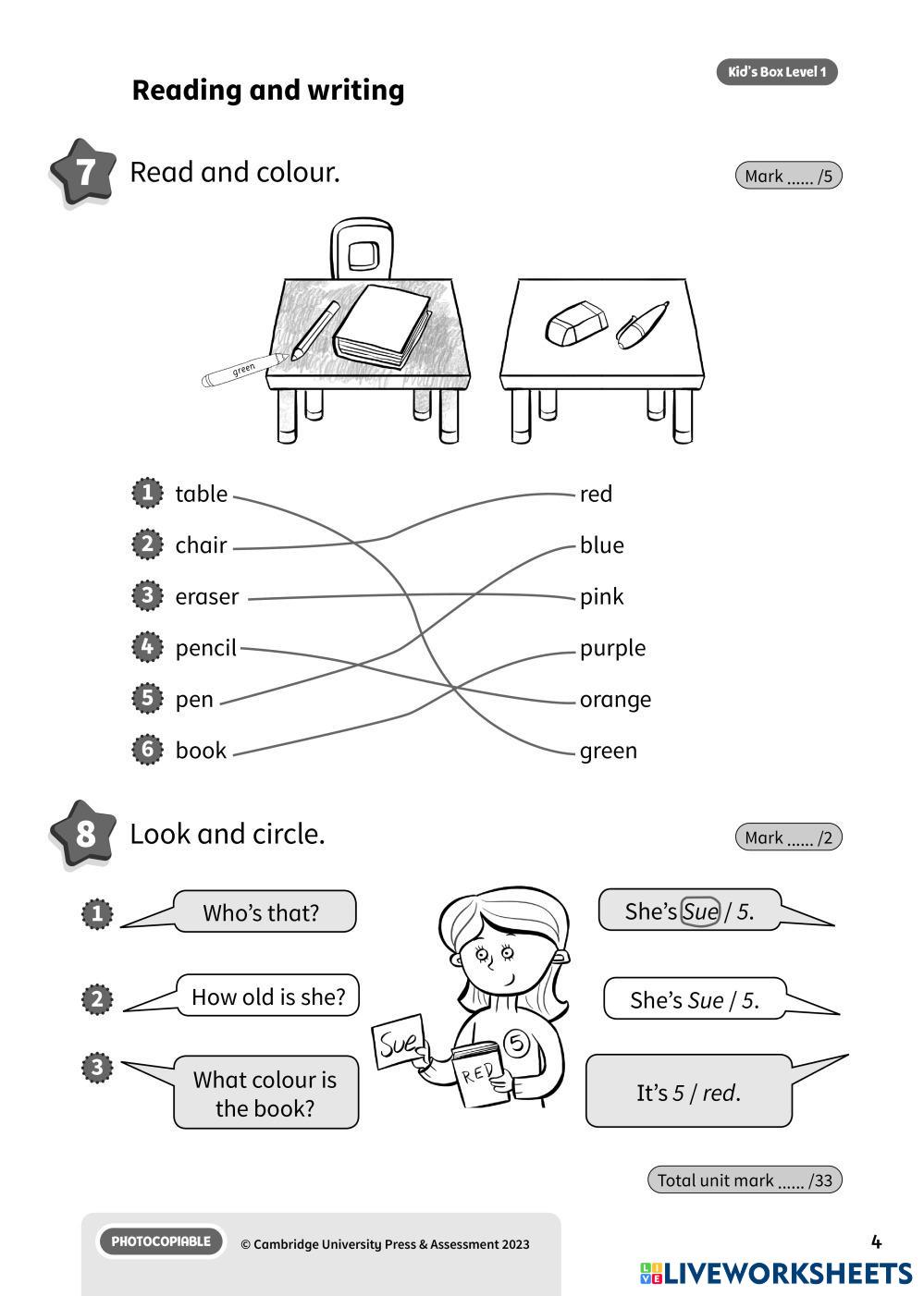 Created byThái Llê Nguyên Thảo English Language Elementary 1st grade Vocabulary English Author's Instructions My Google Classroom Courses × 0 classes selected (0 students total) Quick Access Select all classes (0 classes) All Classes Loading courses... Cancel Share Share to selected Course __COURSE_NAME__ __STUDENT_NAME__ (__STUDENT_EMAIL__) KID BOX1 _ UNIT 2 SCHOOL.A Download Worksheet Validation Check my answers Emails my answers to my teacher Full name Group/level School subject Teacher's email or key code Close Submit Validating worksheet... (12) Your answers have been sent to your teacher. Good luck! OK We encountered an error submitting your answers. Please try again. OK Advertisement | Go Ad Free Created byThái Llê Nguyên Thảo English Language Elementary 1st grade Vocabulary English Author's Instructions Explore Worksheets Colours English Language 1st grade Colours Vocabulary - English Language Drag and drop. Verbs English Language 1st grade Verbs Vocabulary - English Language Complete the worksheet Number 1-10 English Language 1st grade Number 1-10 Vocabulary - English Language Recognize number and how they are written Listening task 1 English Language 1st grade Listening task 1 Vocabulary - English Language Listen and choose the correct answer