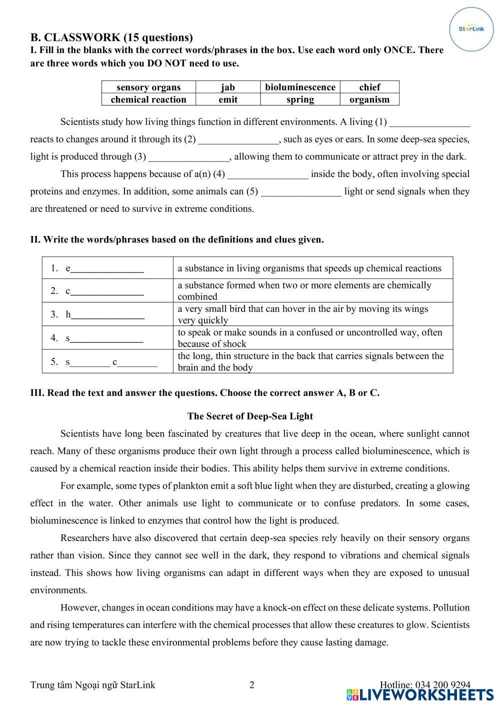 Created by GE8_MsChi English Language Middle School 8th grade Vocabulary English Author's Instructions Online_Foreign Teacher_S8_W30_U6_Vocabulary Revision My Google Classroom Courses × 0 classes selected (0 students total) Quick Access Select all classes (0 classes) All Classes Loading courses... Cancel Share Share to selected Course __COURSE_NAME__ __STUDENT_NAME__ (__STUDENT_EMAIL__) Online_Foreign Teacher_S8_W30_U6_Vocabulary Revision Download Worksheet Validation Check my answers Emails my answers to my teacher Full name Group/level School subject Teacher's email or key code Close Submit Validating worksheet... (12) Your answers have been sent to your teacher. Good luck! OK We encountered an error submitting your answers. Please try again. OK Advertisement | Go Ad Free Created by GE8_MsChi English Language Middle School 8th grade Vocabulary English Author's Instructions Online_Foreign Teacher_S8_W30_U6_Vocabulary Revision Explore Worksheets Opposites English Language 8th grade Opposites Vocabulary - English Language Fill in the correct opposite in the sentences below. Responsible consumption English Language 8th grade Responsible consumption Vocabulary - English Language Responsible consumption SDG 12 NUMBERS AND COLORS English Language 8th grade NUMBERS AND COLORS Vocabulary - English Language PRACTICE NUMBERS 11-20 Gaeng Naw Mai (Isan Food) English Language 8th grade Gaeng Naw Mai (Isan Food) Vocabulary - English Language Exercise 1 Directions: Look at the picture and match it with the correct word.