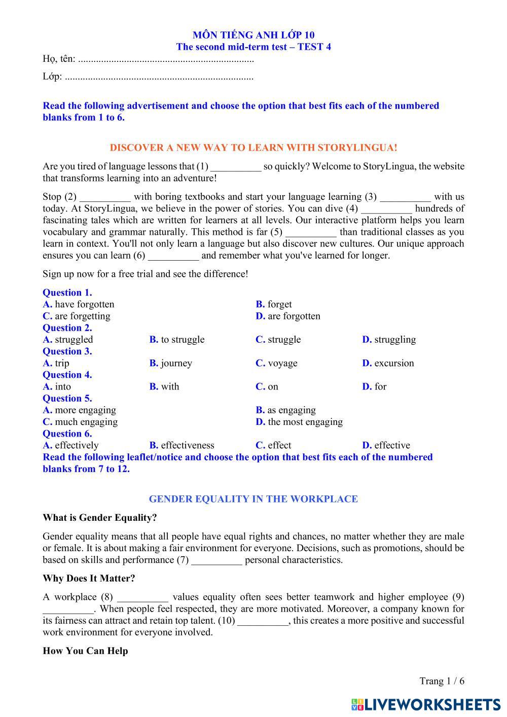 Created byĐặng Thành Đạt English Language High School 9th grade Vocabulary English Author's Instructions SDCS My Google Classroom Courses × 0 classes selected (0 students total) Quick Access Select all classes (0 classes) All Classes Loading courses... Cancel Share Share to selected Course __COURSE_NAME__ __STUDENT_NAME__ (__STUDENT_EMAIL__) E10-MIDTERM-T4 Download Worksheet Validation Check my answers Emails my answers to my teacher Full name Group/level School subject Teacher's email or key code Close Submit Validating worksheet... (12) Your answers have been sent to your teacher. Good luck! OK We encountered an error submitting your answers. Please try again. OK Advertisement | Go Ad Free Created byĐặng Thành Đạt English Language High School 9th grade Vocabulary English Author's Instructions SDCS Explore Worksheets FOODS & DRINKS English Language 9th grade FOODS & DRINKS Vocabulary - English Language FOODS & DRINKS FOODS & DRINKS English Language 9th grade FOODS & DRINKS Vocabulary - English Language FOODS & DRINKS FOODS & DRINKS English Language 9th grade FOODS & DRINKS Vocabulary - English Language FOODS & DRINKS FOODS & DRINKS English Language 9th grade FOODS & DRINKS Vocabulary - English Language FOODS & DRINKS