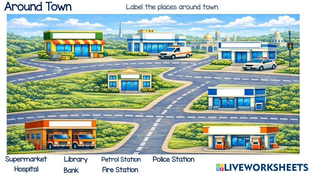 Label the places around town.