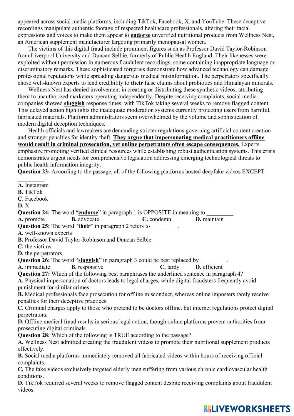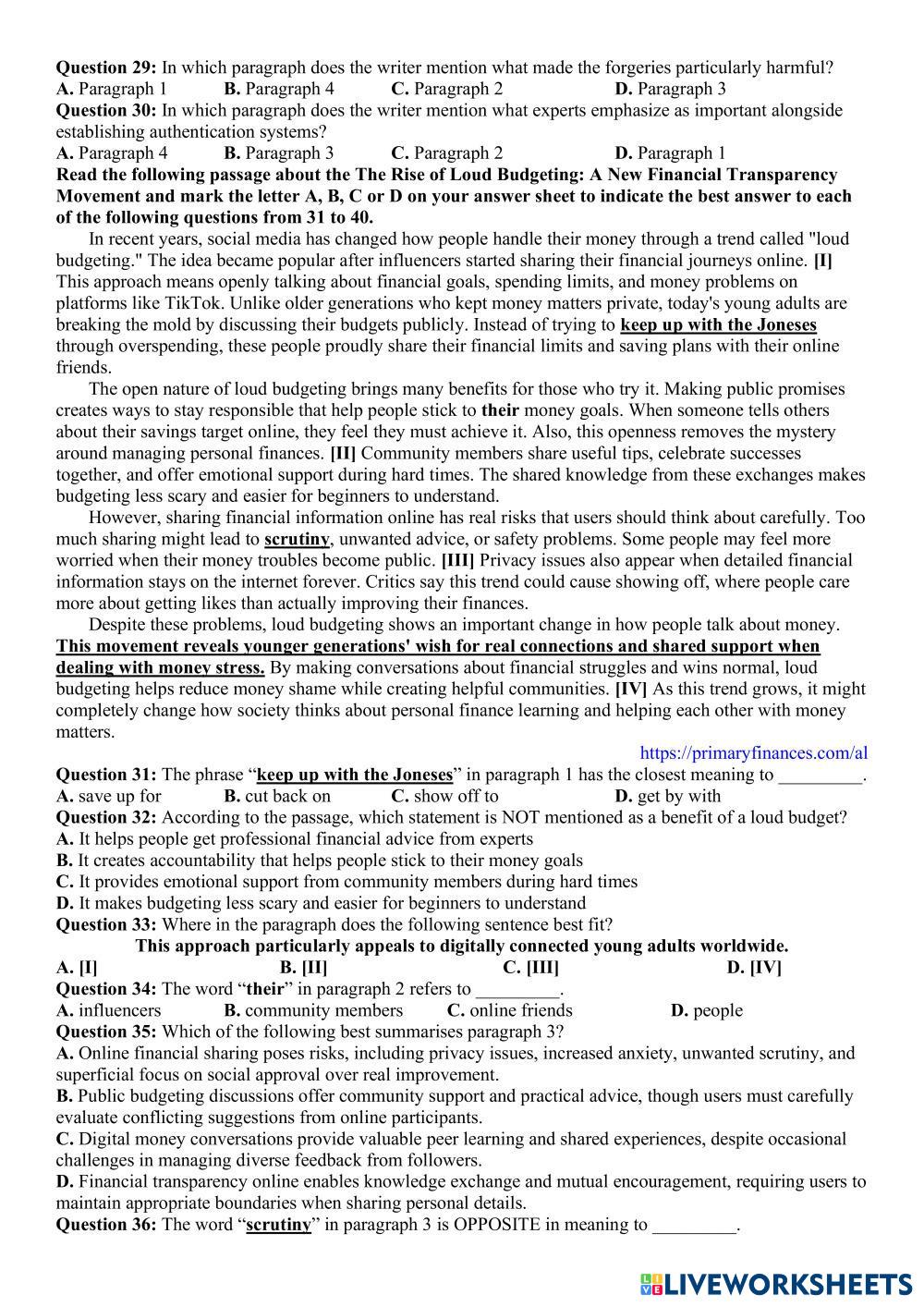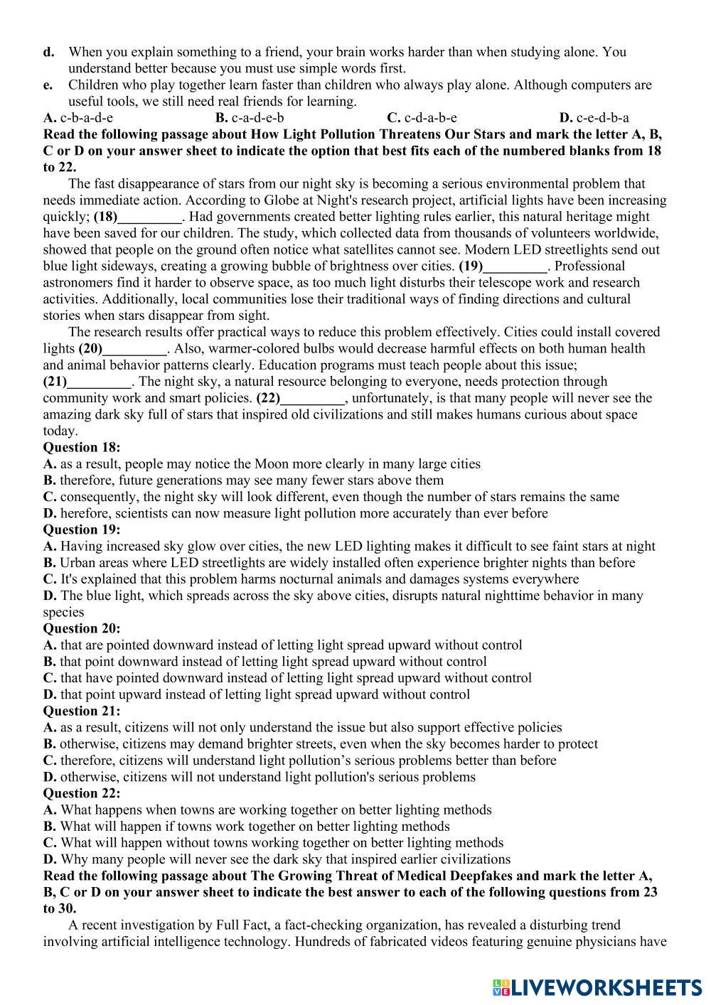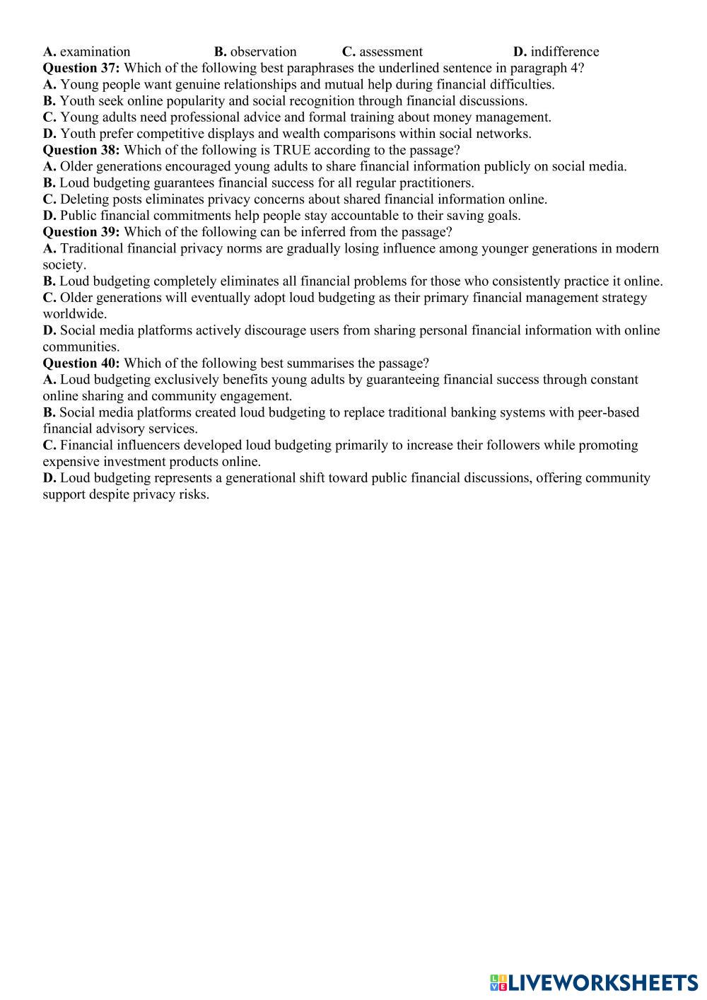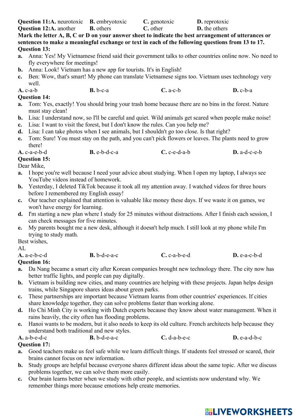 Created byĐặng Thành Đạt English Language High School 12th grade Vocabulary English Author's Instructions dzfvz My Google Classroom Courses × 0 classes selected (0 students total) Quick Access Select all classes (0 classes) All Classes Loading courses... Cancel Share Share to selected Course __COURSE_NAME__ __STUDENT_NAME__ (__STUDENT_EMAIL__) đề 14 vip Download Worksheet Validation Check my answers Emails my answers to my teacher Full name Group/level School subject Teacher's email or key code Close Submit Validating worksheet... (12) Your answers have been sent to your teacher. Good luck! OK We encountered an error submitting your answers. Please try again. OK Advertisement | Go Ad Free Created byĐặng Thành Đạt English Language High School 12th grade Vocabulary English Author's Instructions dzfvz Explore Worksheets WHAT´S YOUR JOB English Language 12th grade WHAT´S YOUR JOB Vocabulary - English Language Homework KET A2 Test 5 English Language 12th grade KET A2 Test 5 Vocabulary - English Language Do the test ورقة عمل (الوظيفة النحوية - الجر بالإضافة ) English Language 12th grade ورقة عمل (الوظيفة النحوية - الجر بالإضافة ) Vocabulary - English Language الأول: اختار الإجابة الصحيحة لما يلي مما بين الأقواس: WORKSHOP 1 BEGGINERS English Language 12th grade WORKSHOP 1 BEGGINERS Vocabulary - English Language Practice the topics with these exercises