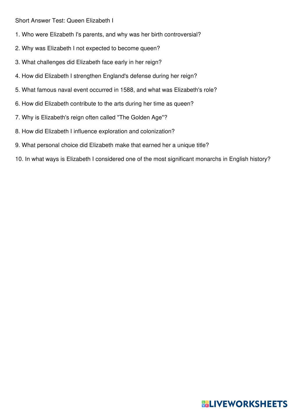7. Why is Elizabeth’s reign often called “The Golden Age”?