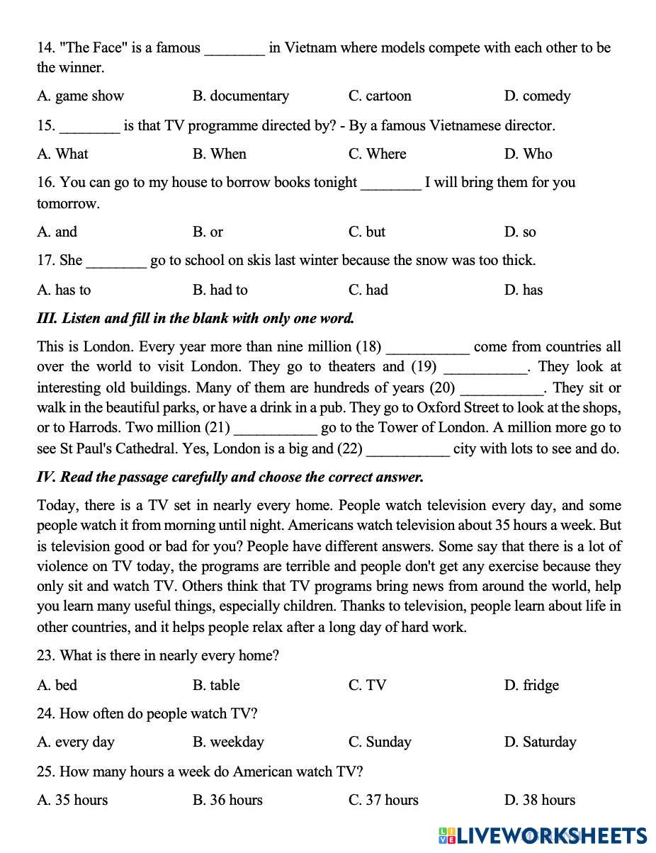 Created byHanhHanhHanh English Language Middle School 6th grade Writing English Author's Instructions TEST My Google Classroom Courses × 0 classes selected (0 students total) Quick Access Select all classes (0 classes) All Classes Loading courses... Cancel Share Share to selected Course __COURSE_NAME__ __STUDENT_NAME__ (__STUDENT_EMAIL__) ANH 6 - TEST U789 Download Worksheet Validation Check my answers Emails my answers to my teacher Full name Group/level School subject Teacher's email or key code Close Submit Validating worksheet... (12) Your answers have been sent to your teacher. Good luck! OK We encountered an error submitting your answers. Please try again. OK Advertisement | Go Ad Free Created byHanhHanhHanh English Language Middle School 6th grade Writing English Author's Instructions TEST Explore Worksheets Letra de canción English Language 6th grade Letra de canción Writing - English Language Completa la letra de la canción. Me siento bien test 6 English Language 6th grade Me siento bien test 6 Writing - English Language Lee bien los enuciados y contesta a las preguntas Worksheet 4-G6 English Language 6th grade Worksheet 4-G6 Writing - English Language Bác Huyền דף עבודה פסח English Language 6th grade דף עבודה פסח Writing - English Language כתבו את המילים המתאימות